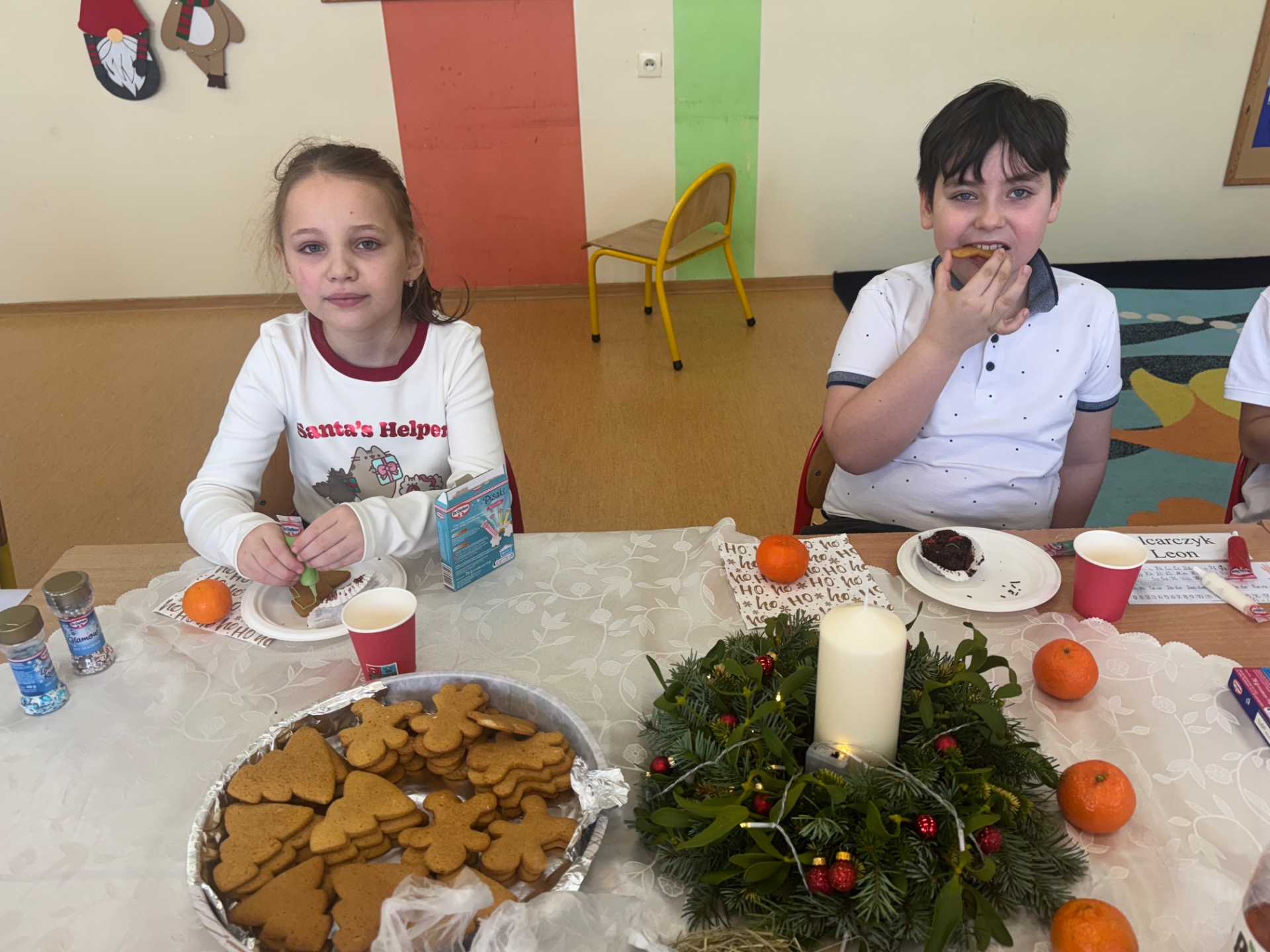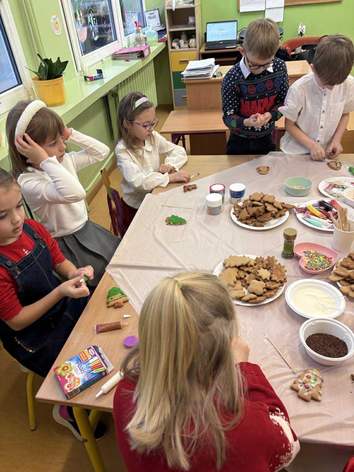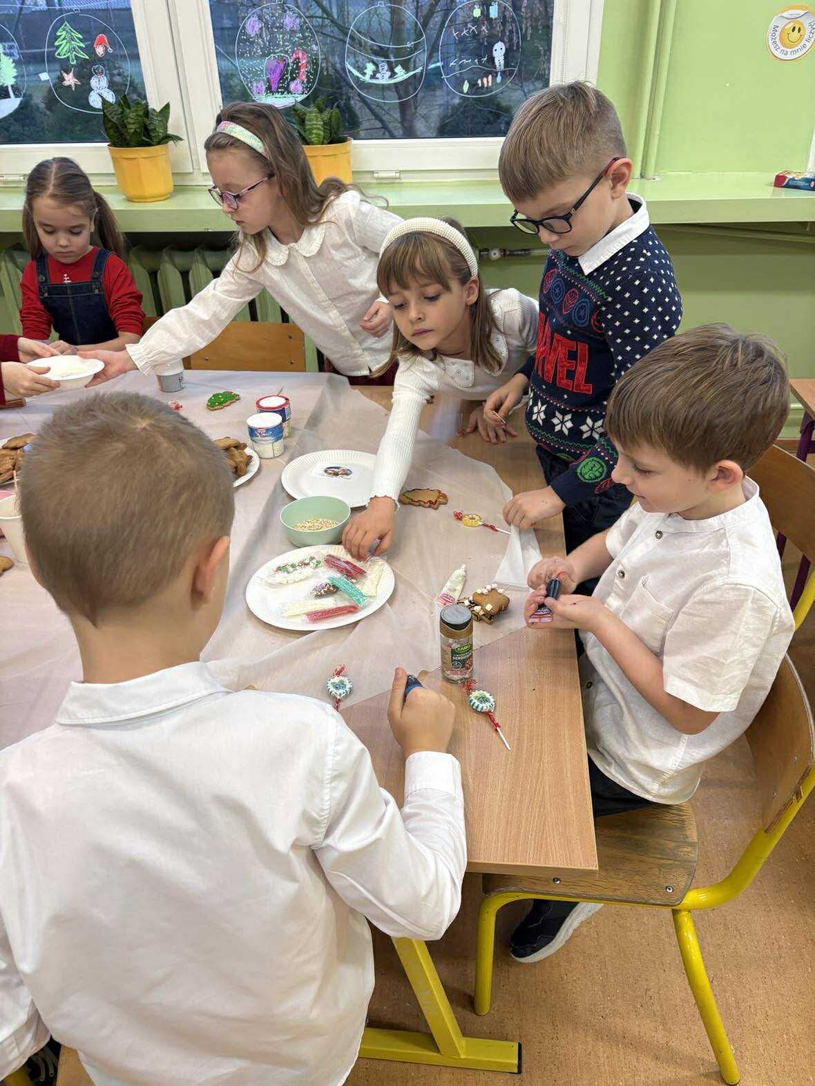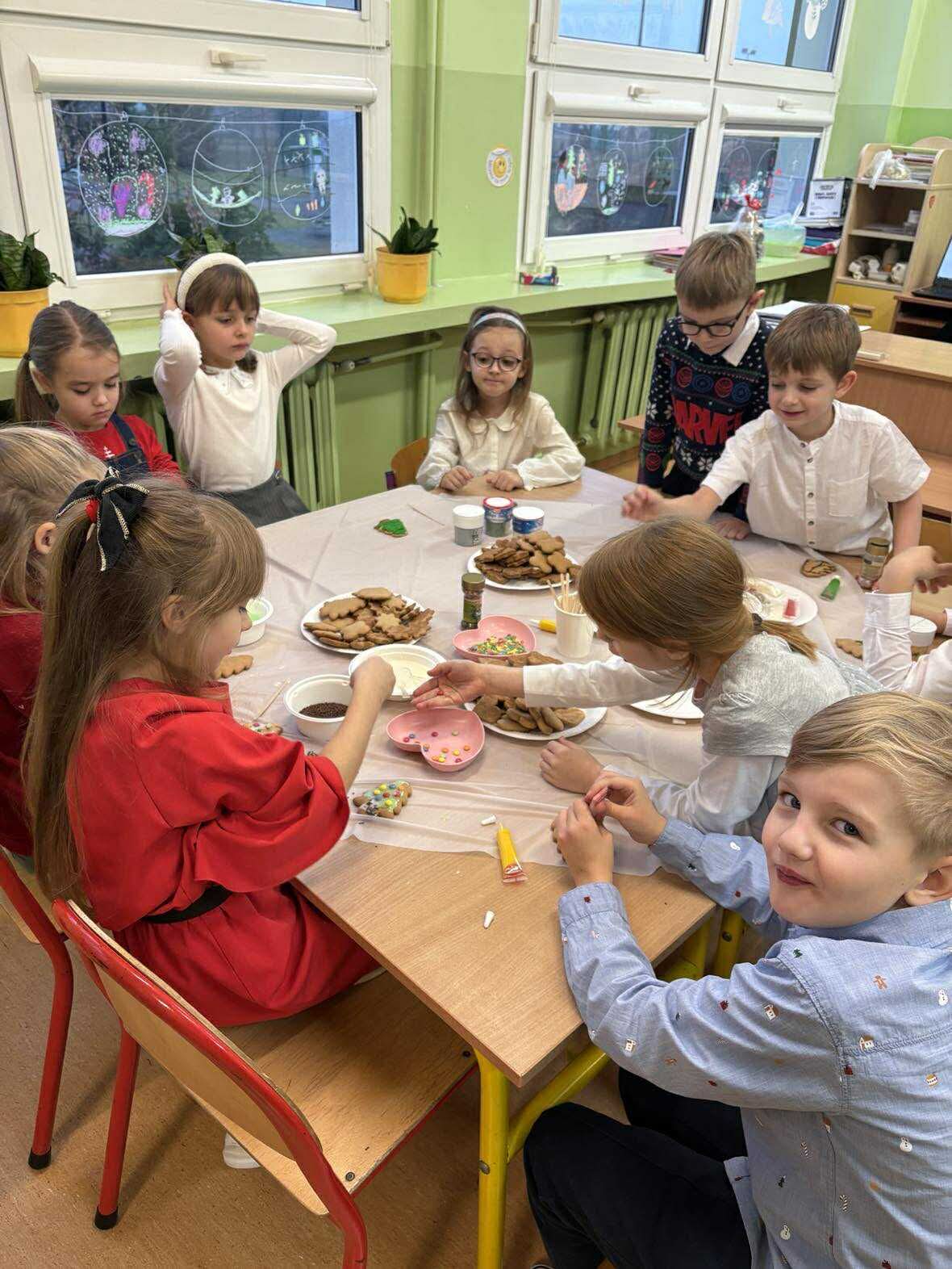 W edukacji wczesnoszkolnej czas przedświąteczny był wyjątkowy i pełen radości 🤍Wspólnie ubieraliśmy choinkę, dekorowaliśmy sale i tworzyliśmy piękne prace plastyczne, które wprowadzały wszystkich w świąteczny nastrój. Dzieci z ogromnym zaangażowaniem dekorowały pierniki, dzieląc się uśmiechem, kreatywnością i dobrym słowem.