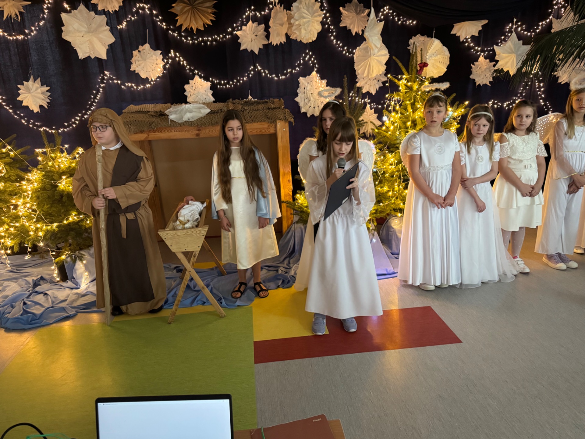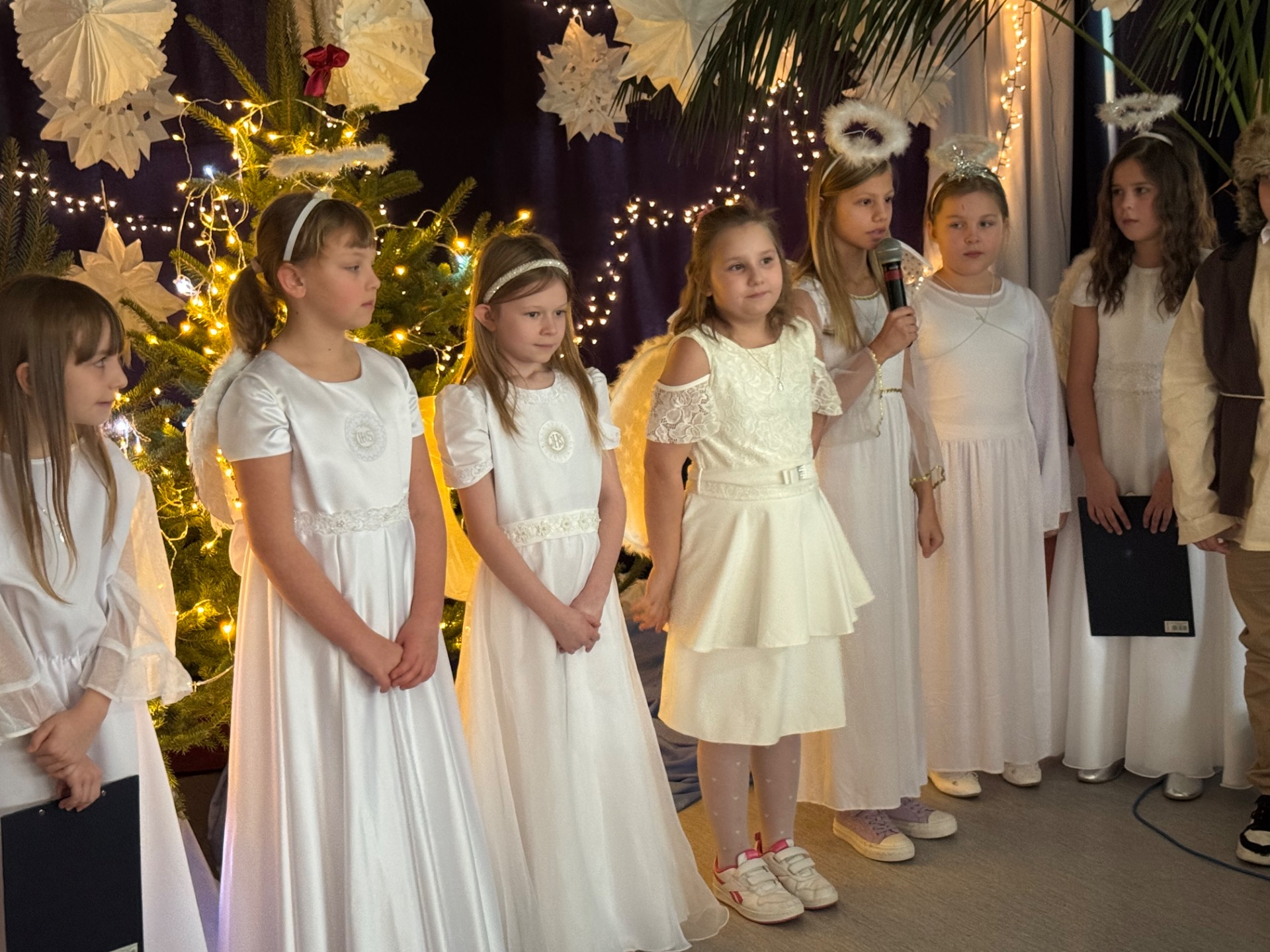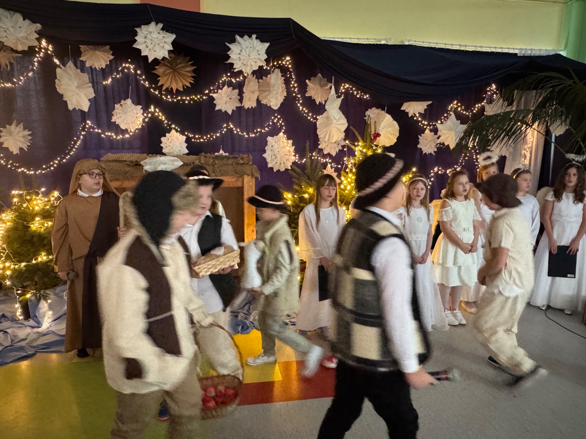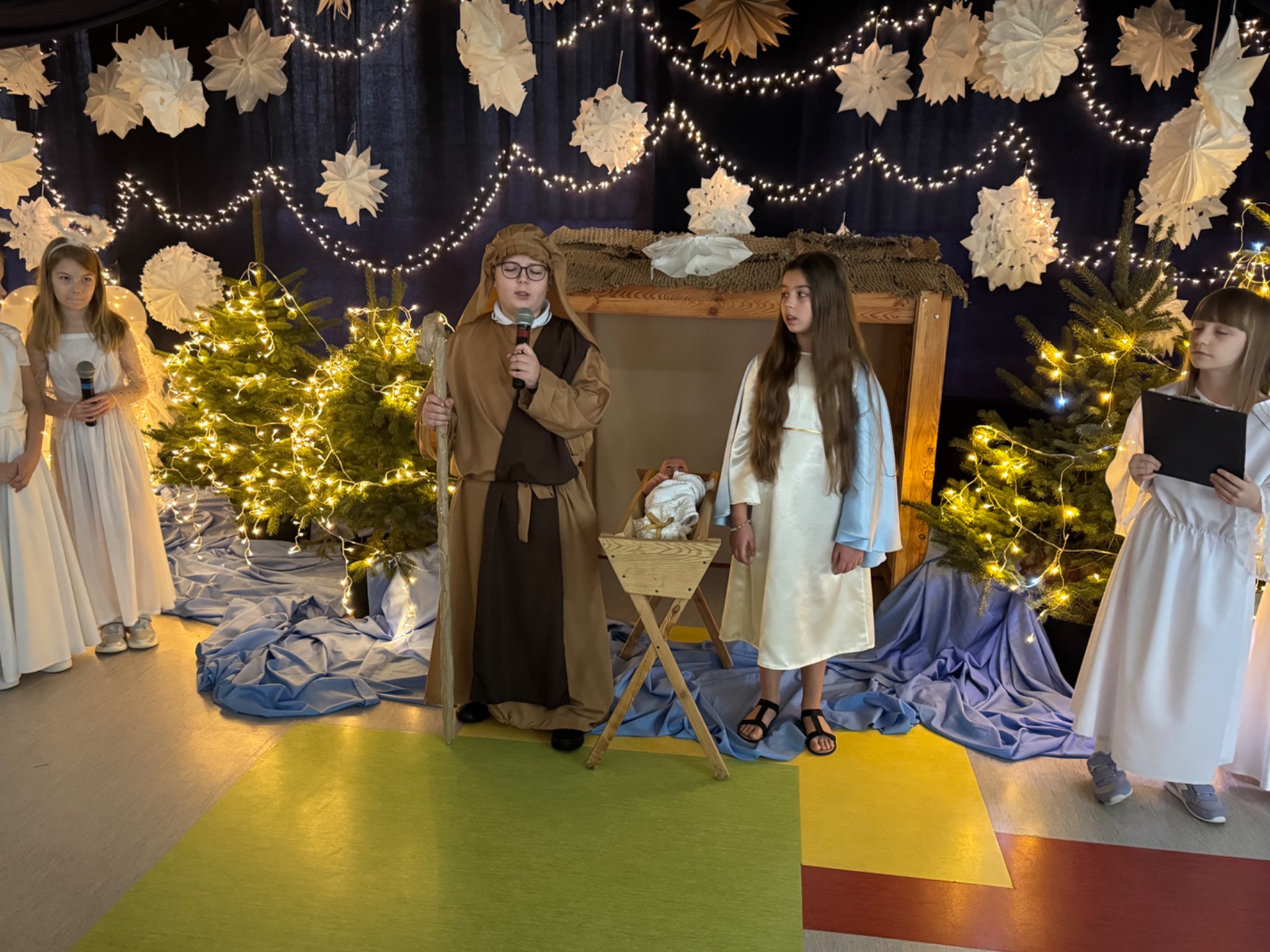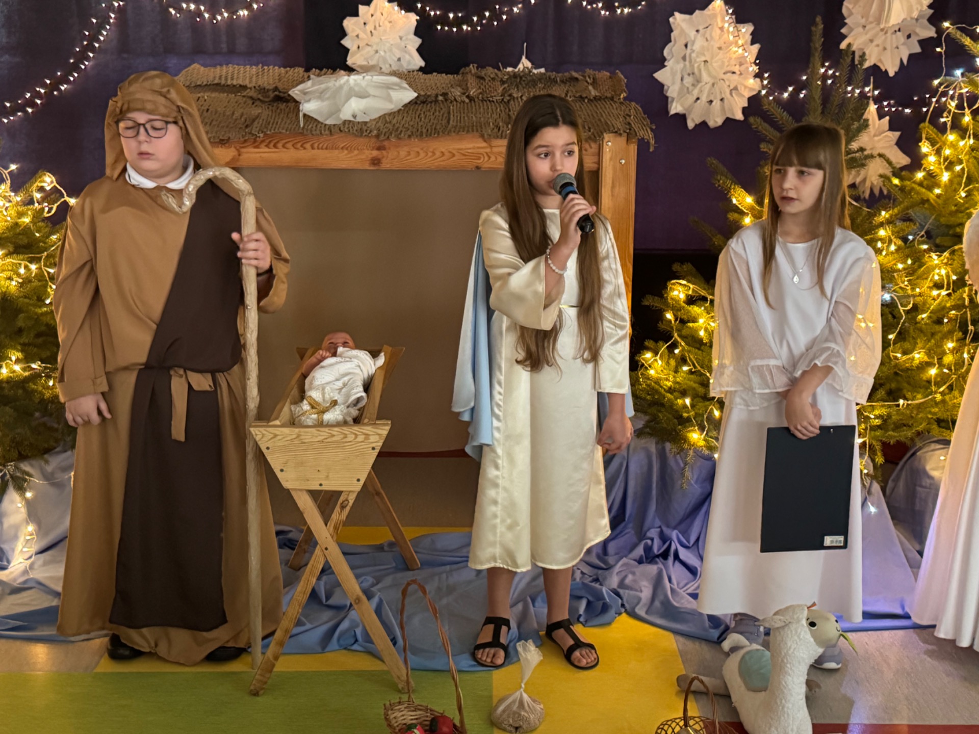 wprowadzili zaproszonych gości w ten świąteczny nastrój. Dzieci zaprezentowały się w przepięknych strojach. Doskonale wcieliły się w swoje role, dzięki temu pokazały swoje umiejętności aktorskie oraz wokalne. Scenki z życia nowo narodzonego Dzieciątka, Maryi i Józefa, pasterzy, mędrców i aniołów przeplatane były kolędami i pastorałkami. Ten magiczny czas jest chwilą na zastanowienie się nad samym sobą!