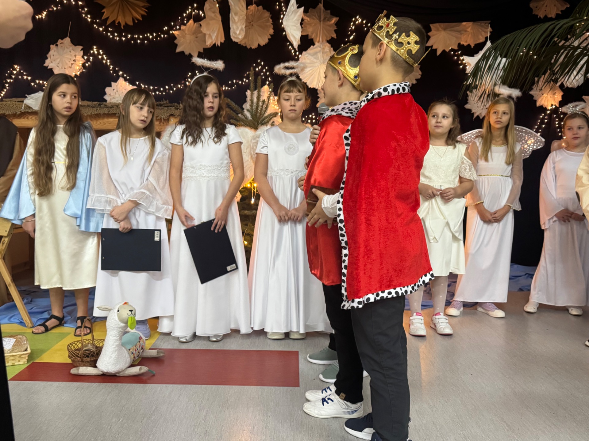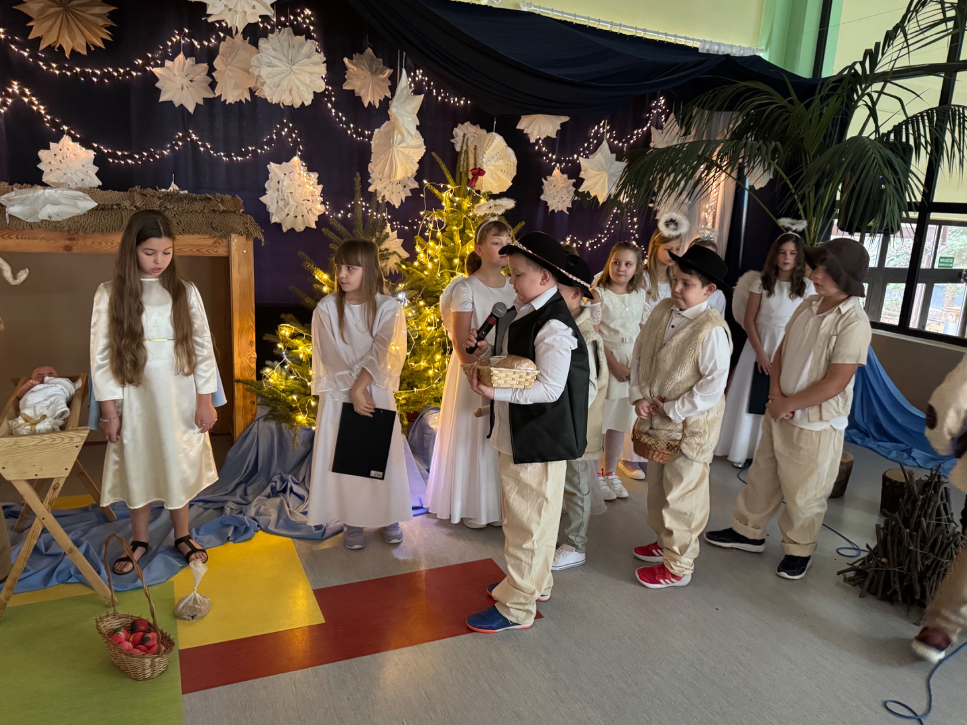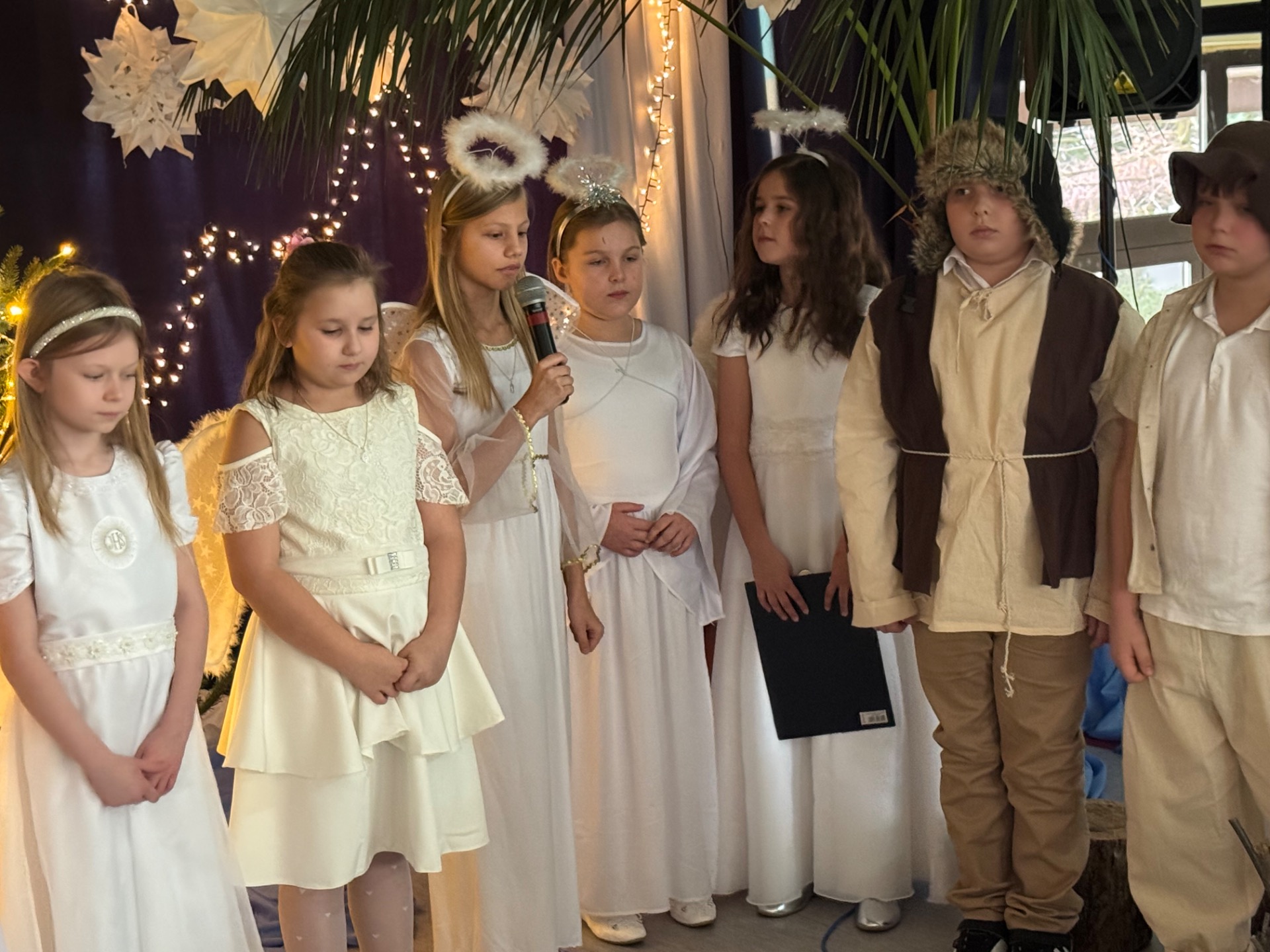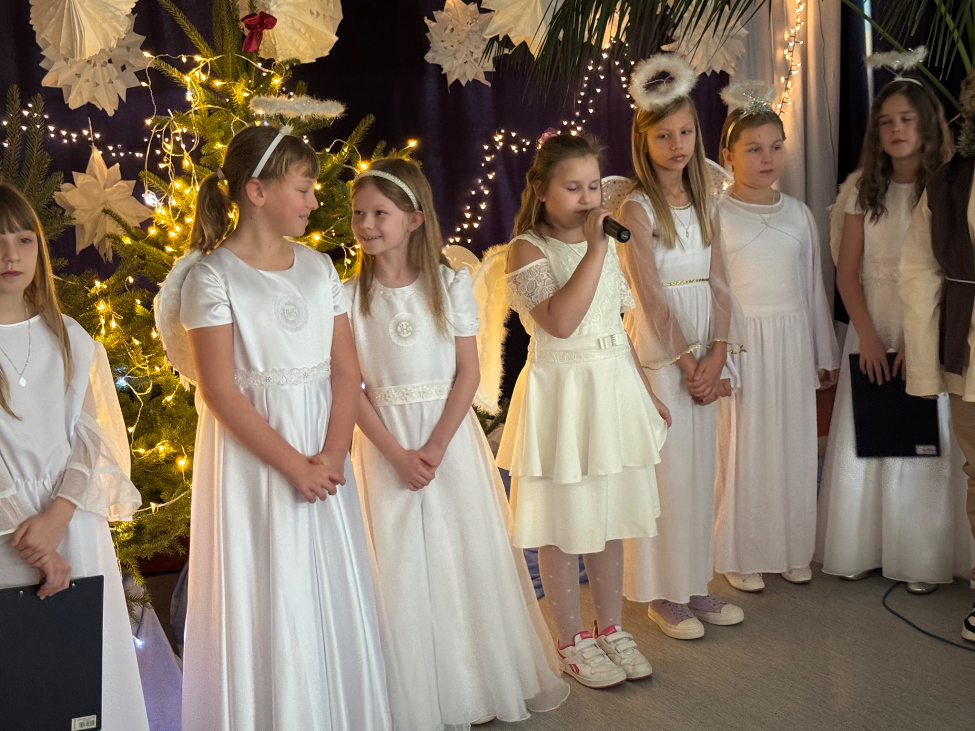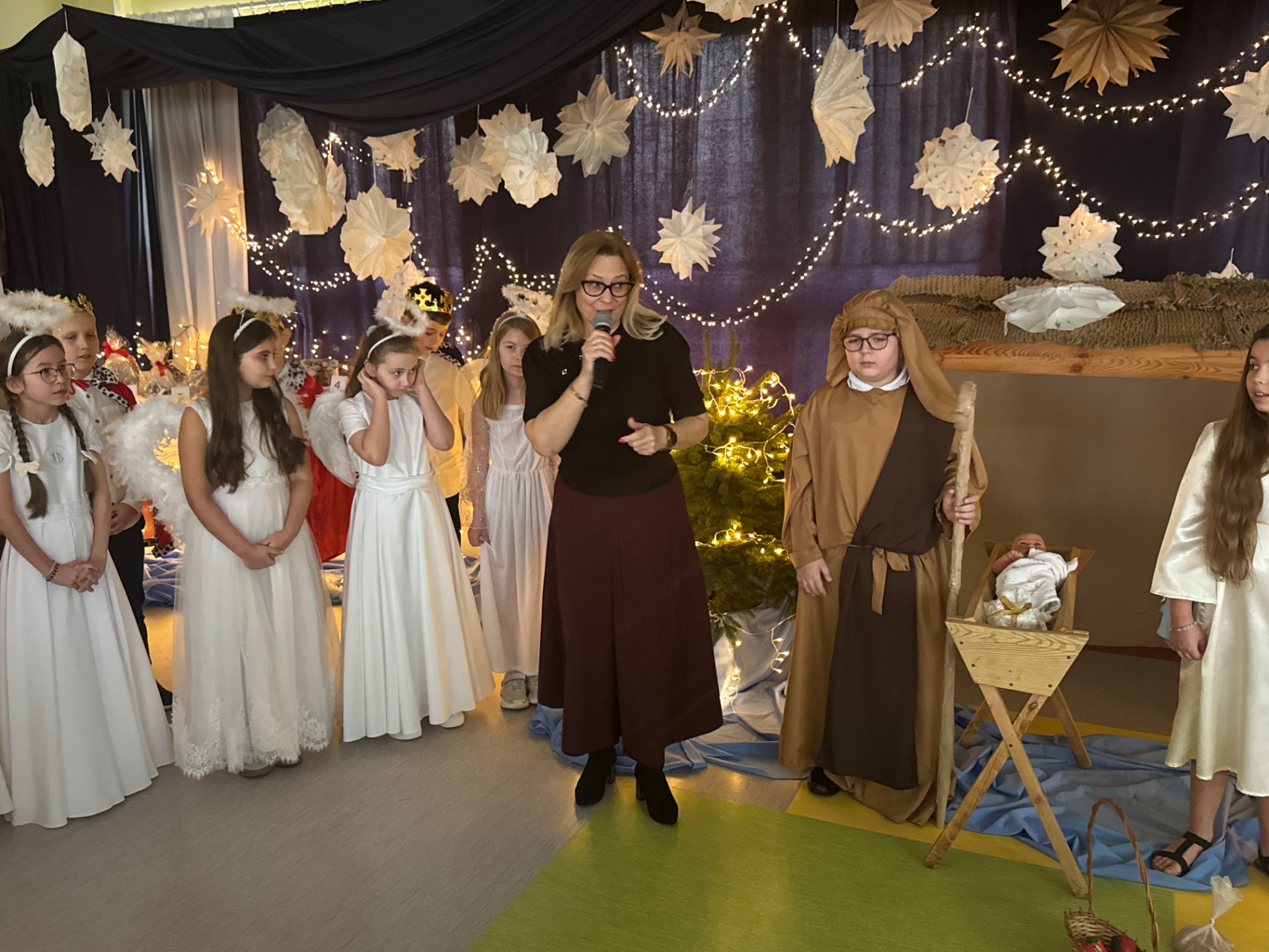 wprowadzili zaproszonych gości w ten świąteczny nastrój. Dzieci zaprezentowały się w przepięknych strojach. Doskonale wcieliły się w swoje role, dzięki temu pokazały swoje umiejętności aktorskie oraz wokalne. Scenki z życia nowo narodzonego Dzieciątka, Maryi i Józefa, pasterzy, mędrców i aniołów przeplatane były kolędami i pastorałkami. Ten magiczny czas jest chwilą na zastanowienie się nad samym sobą!