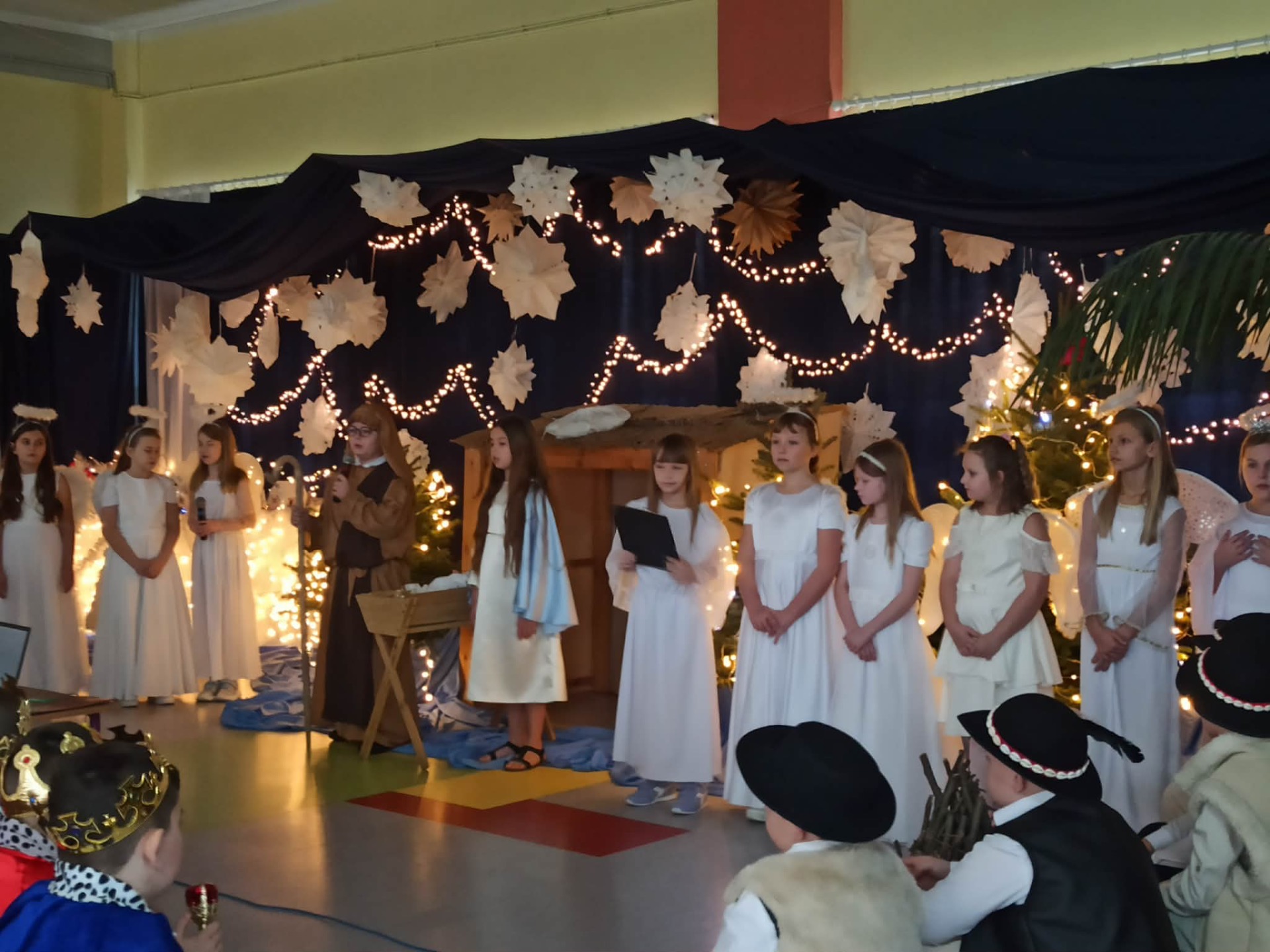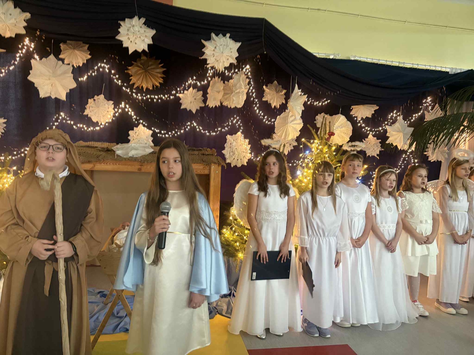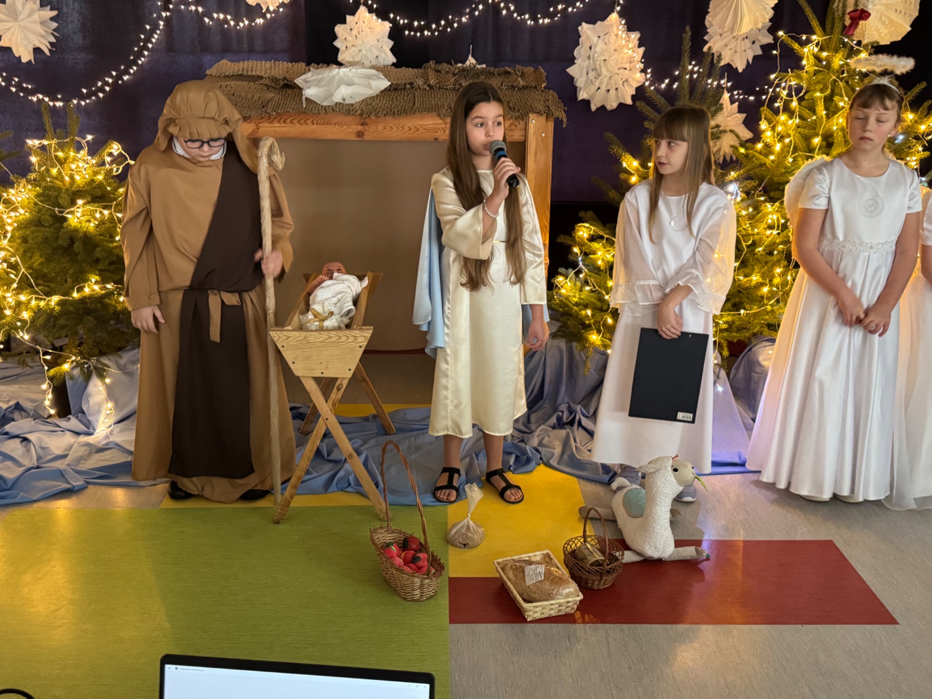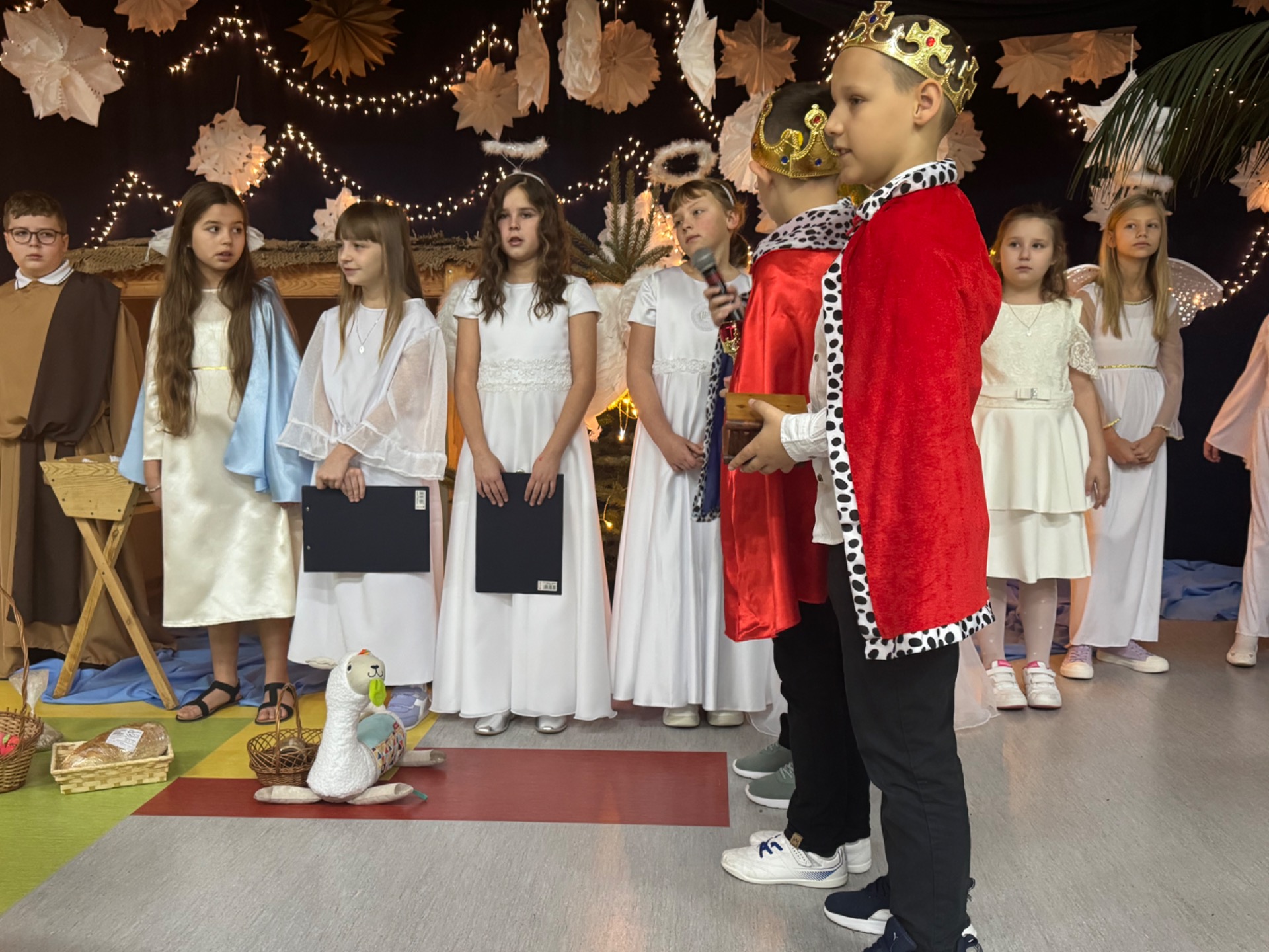 wprowadzili zaproszonych gości w ten świąteczny nastrój. Dzieci zaprezentowały się w przepięknych strojach. Doskonale wcieliły się w swoje role, dzięki temu pokazały swoje umiejętności aktorskie oraz wokalne. Scenki z życia nowo narodzonego Dzieciątka, Maryi i Józefa, pasterzy, mędrców i aniołów przeplatane były kolędami i pastorałkami. Ten magiczny czas jest chwilą na zastanowienie się nad samym sobą!