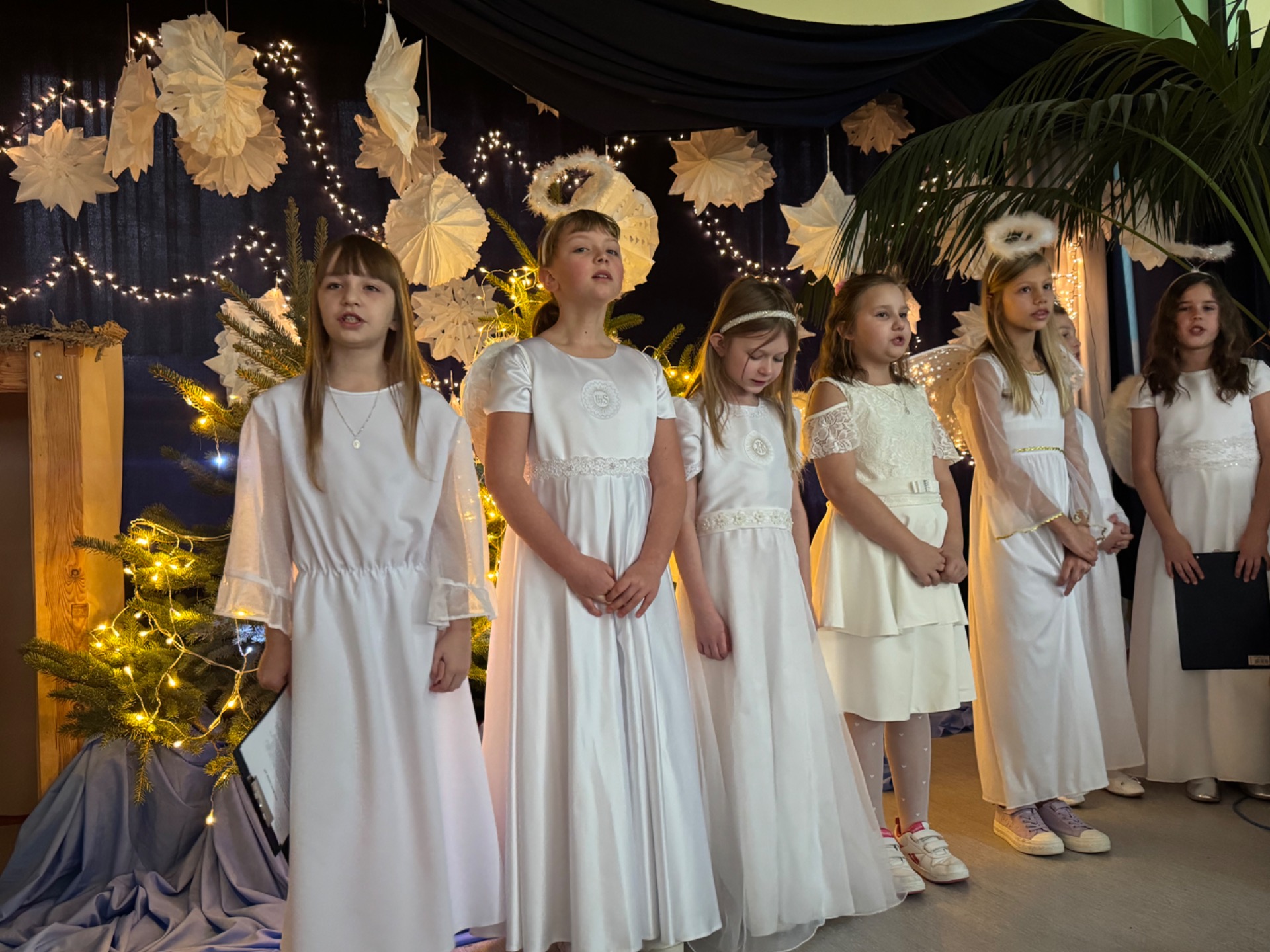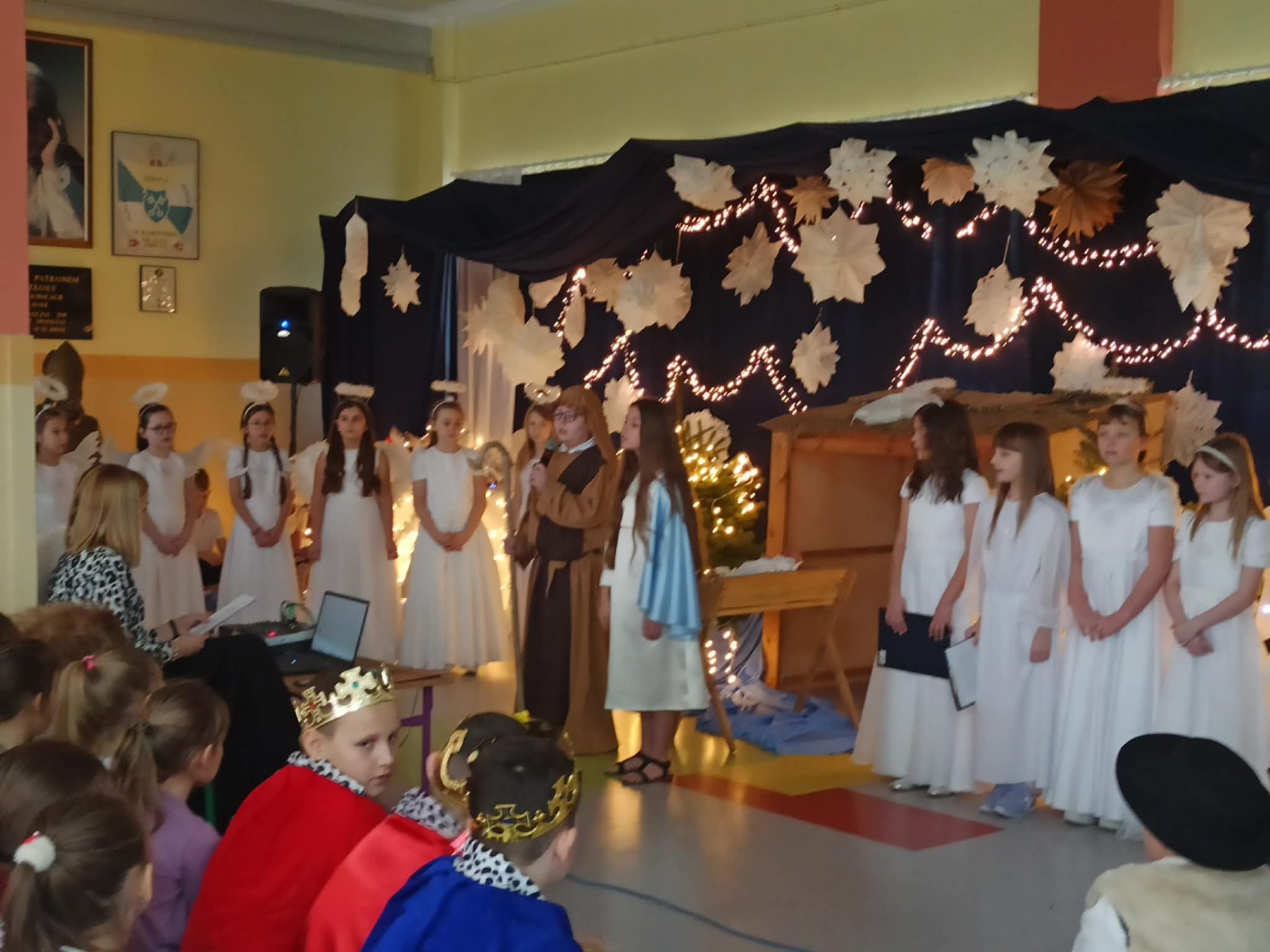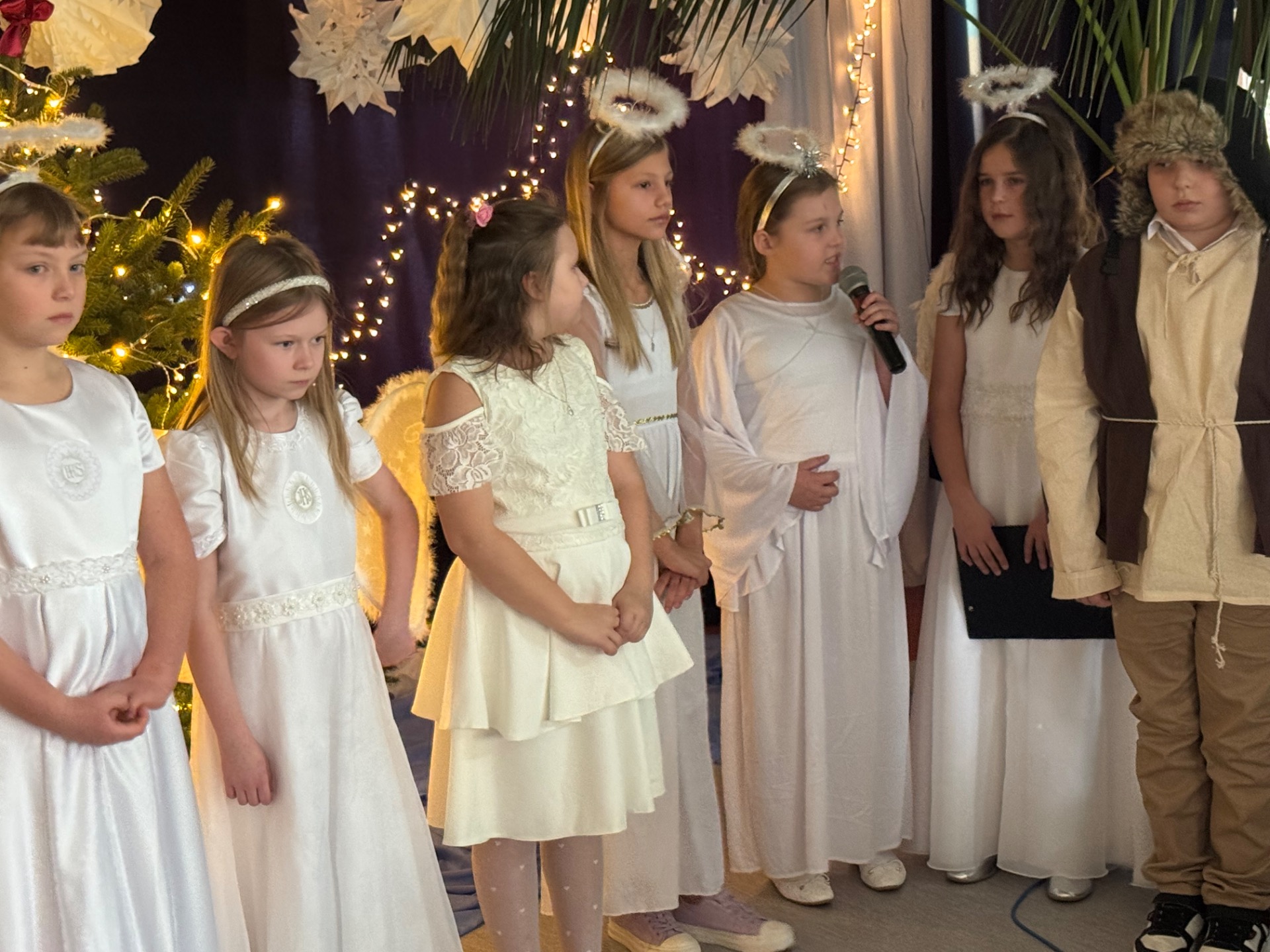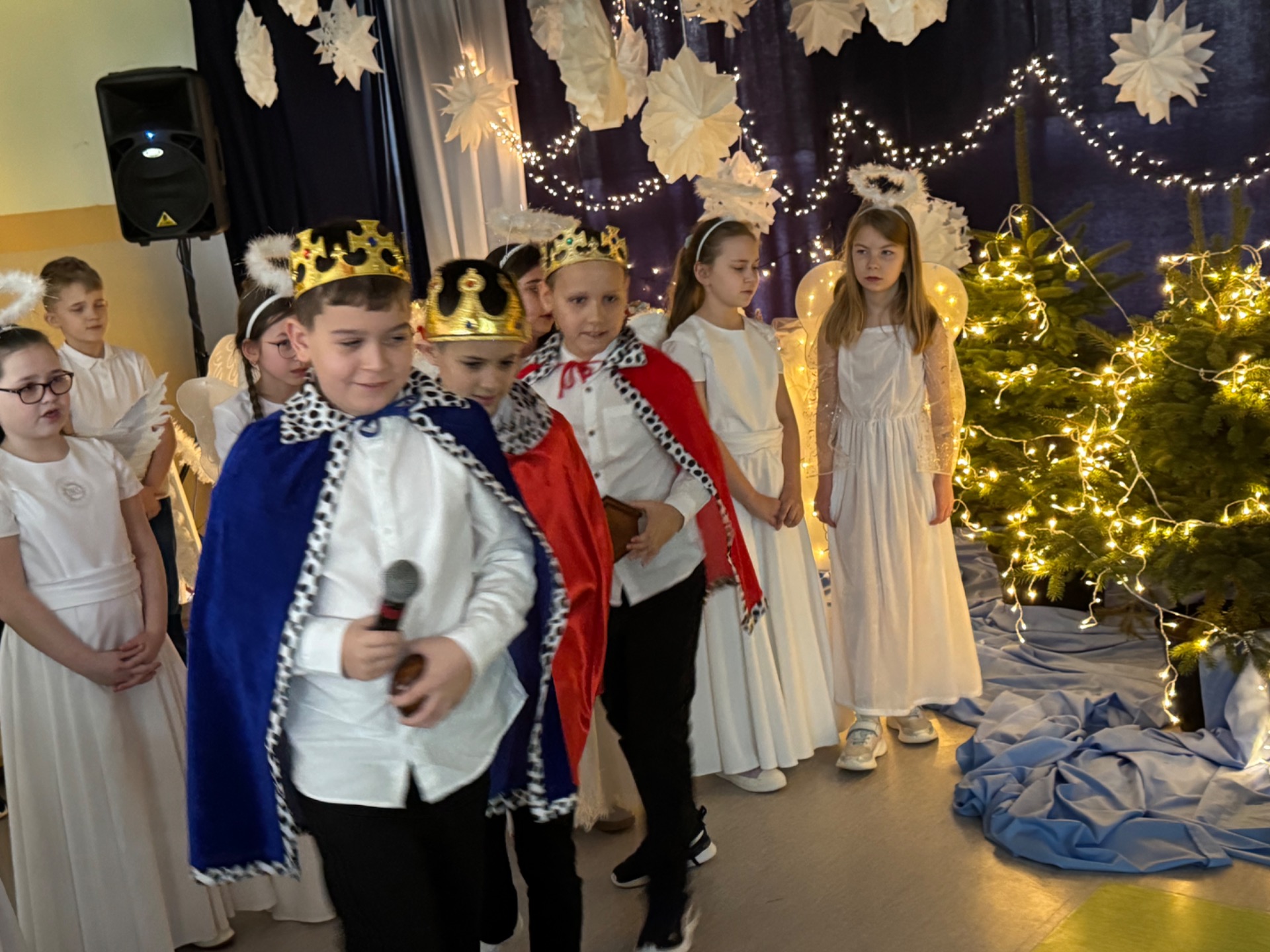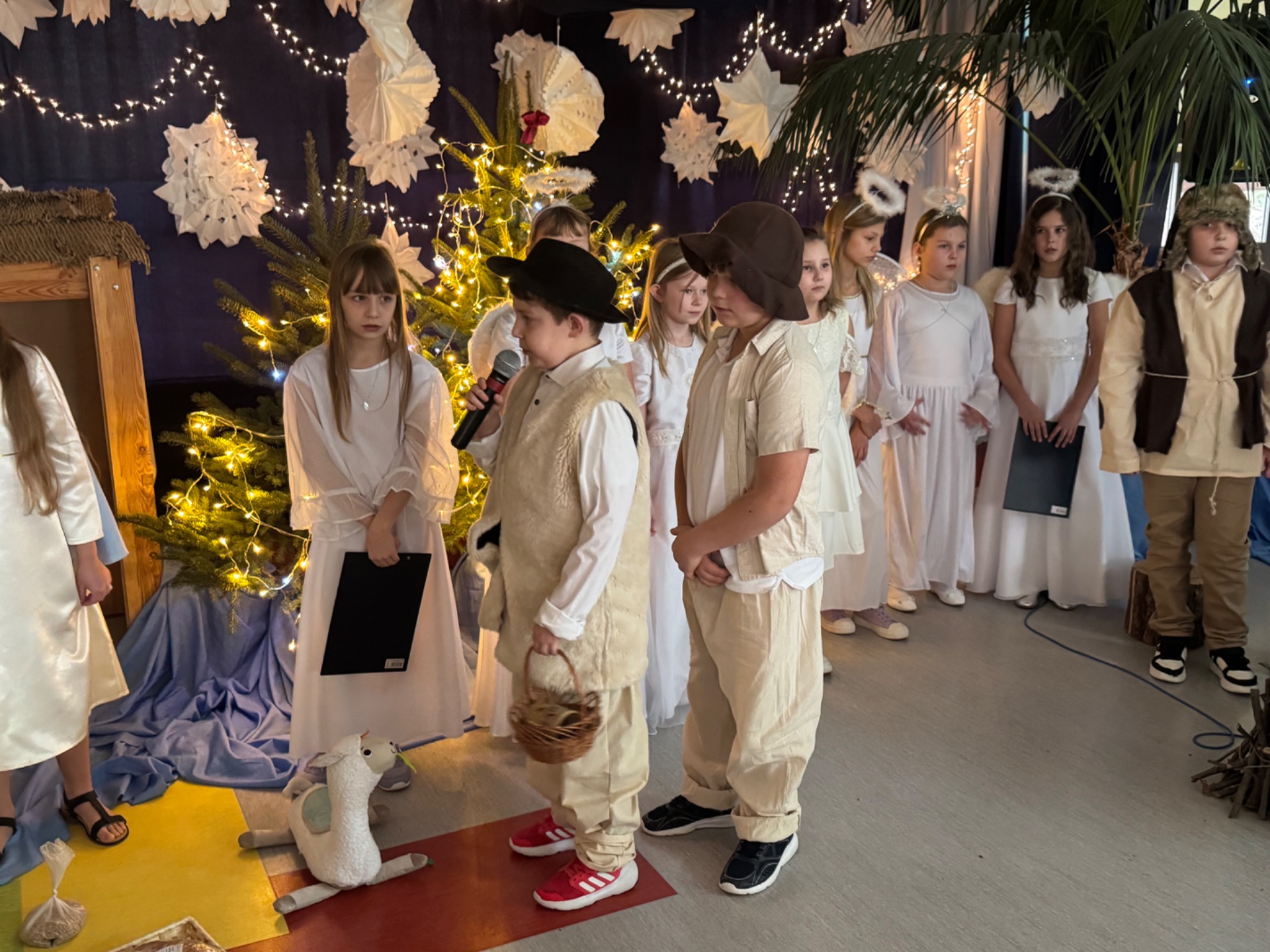 wprowadzili zaproszonych gości w ten świąteczny nastrój. Dzieci zaprezentowały się w przepięknych strojach. Doskonale wcieliły się w swoje role, dzięki temu pokazały swoje umiejętności aktorskie oraz wokalne. Scenki z życia nowo narodzonego Dzieciątka, Maryi i Józefa, pasterzy, mędrców i aniołów przeplatane były kolędami i pastorałkami. Ten magiczny czas jest chwilą na zastanowienie się nad samym sobą!