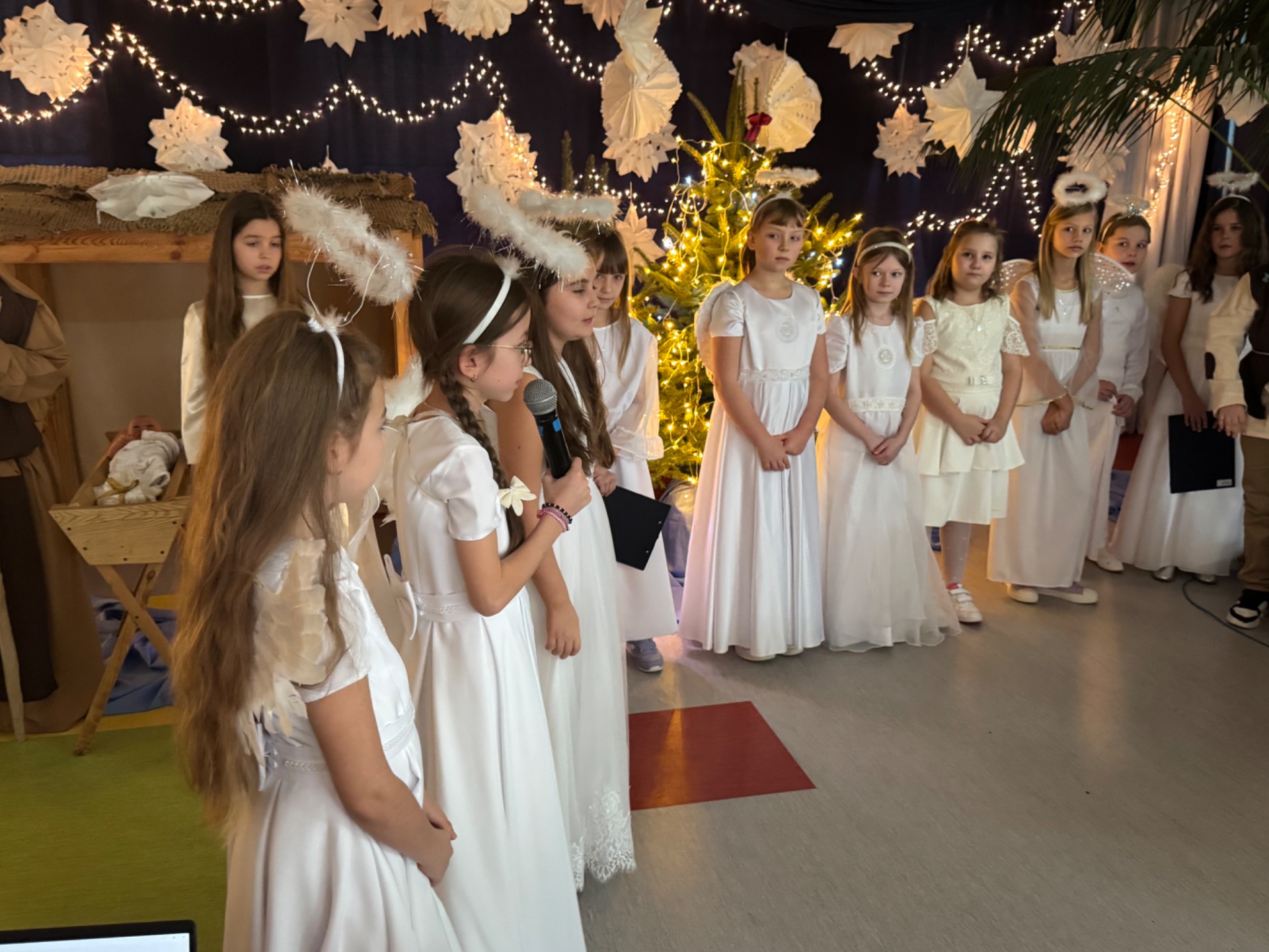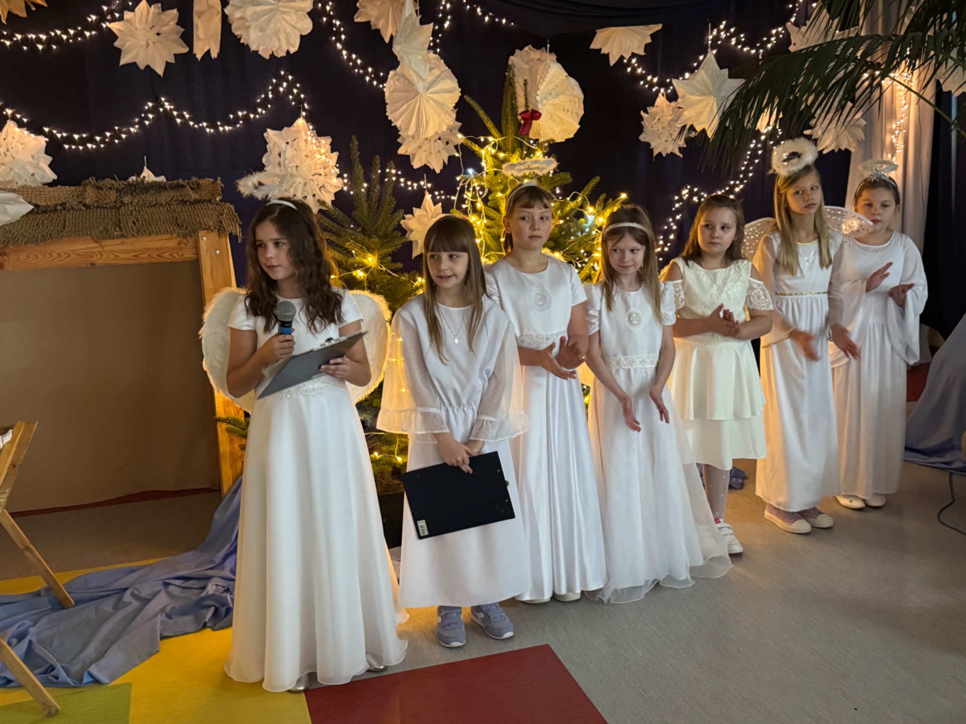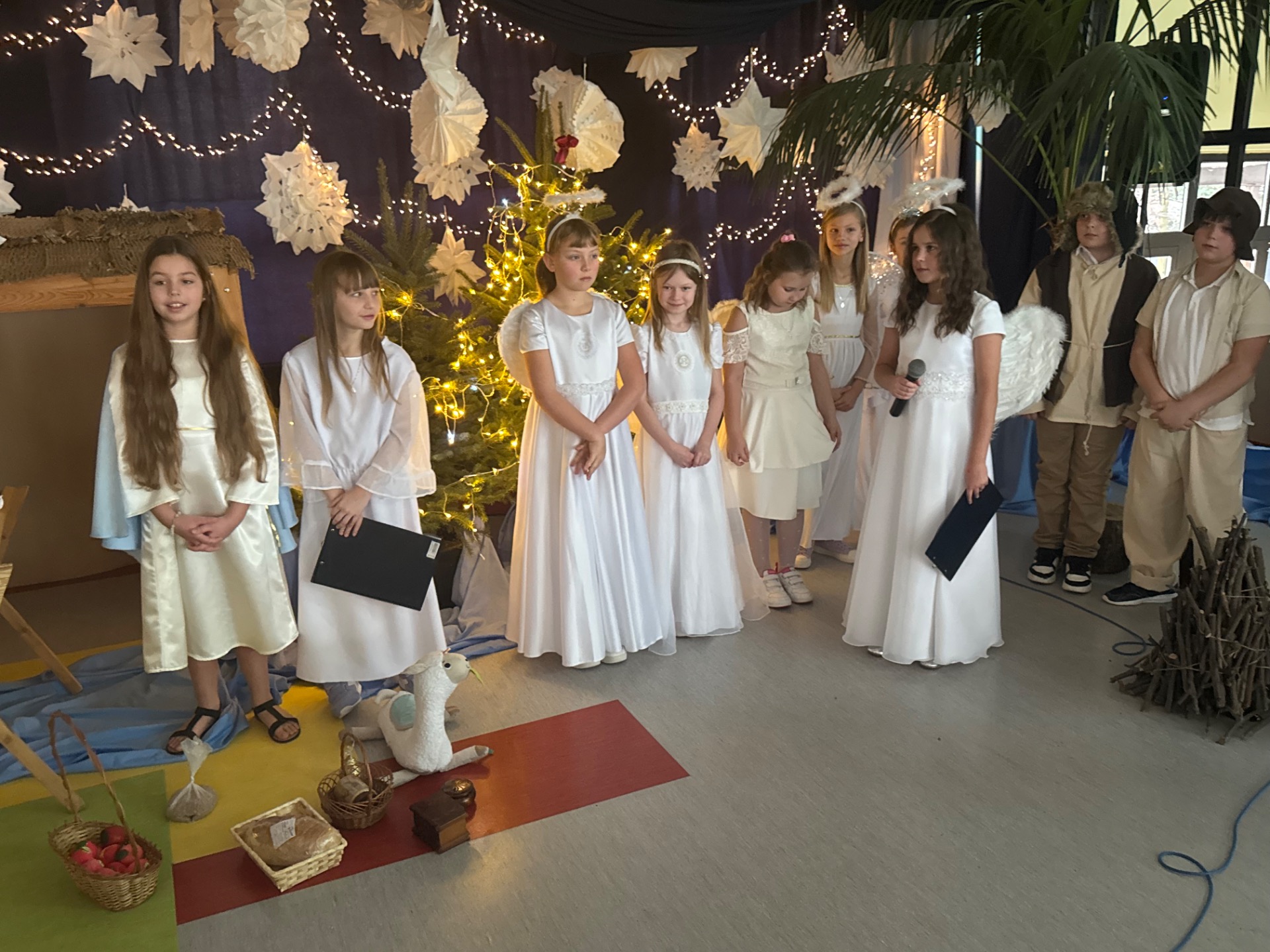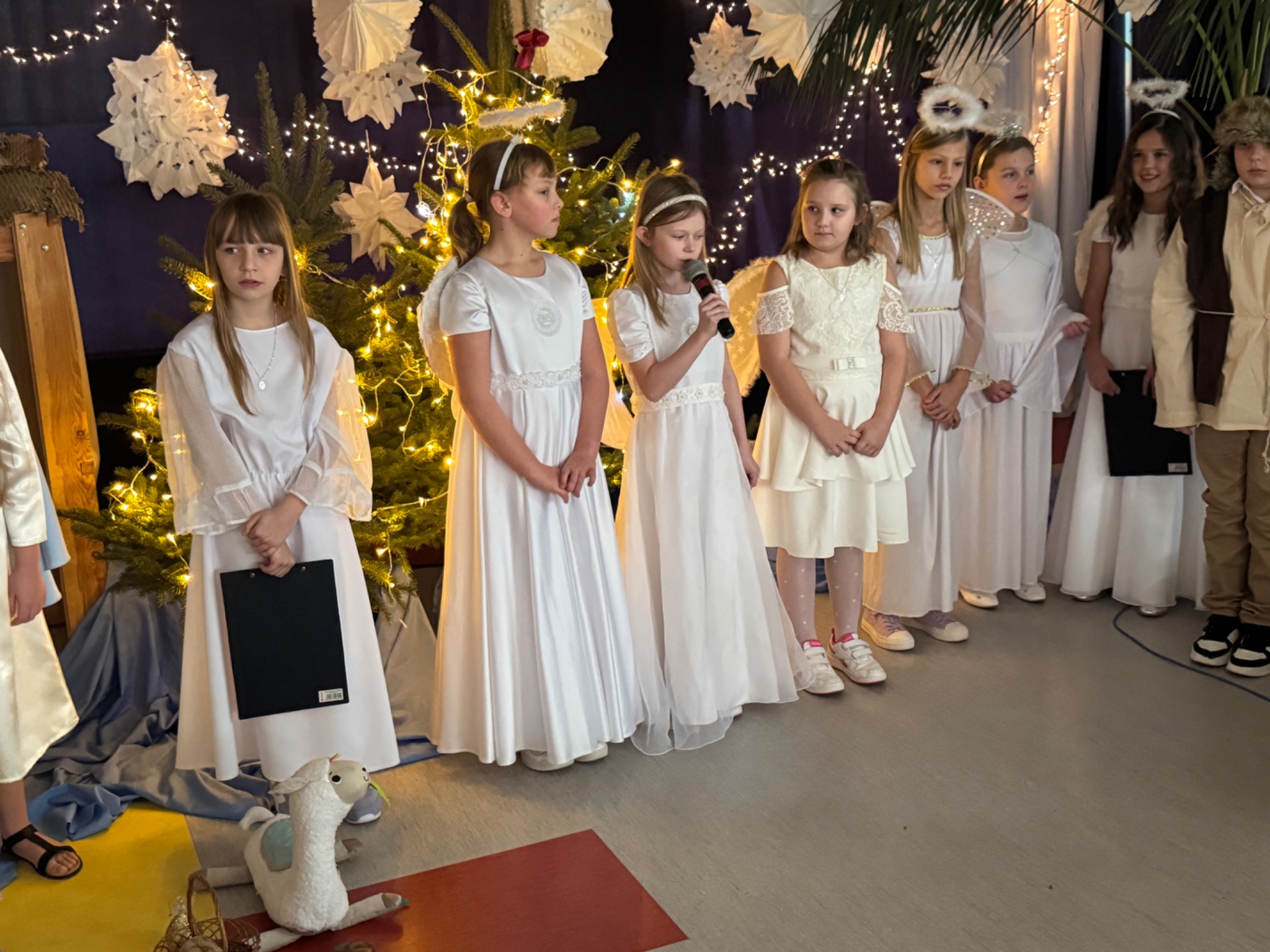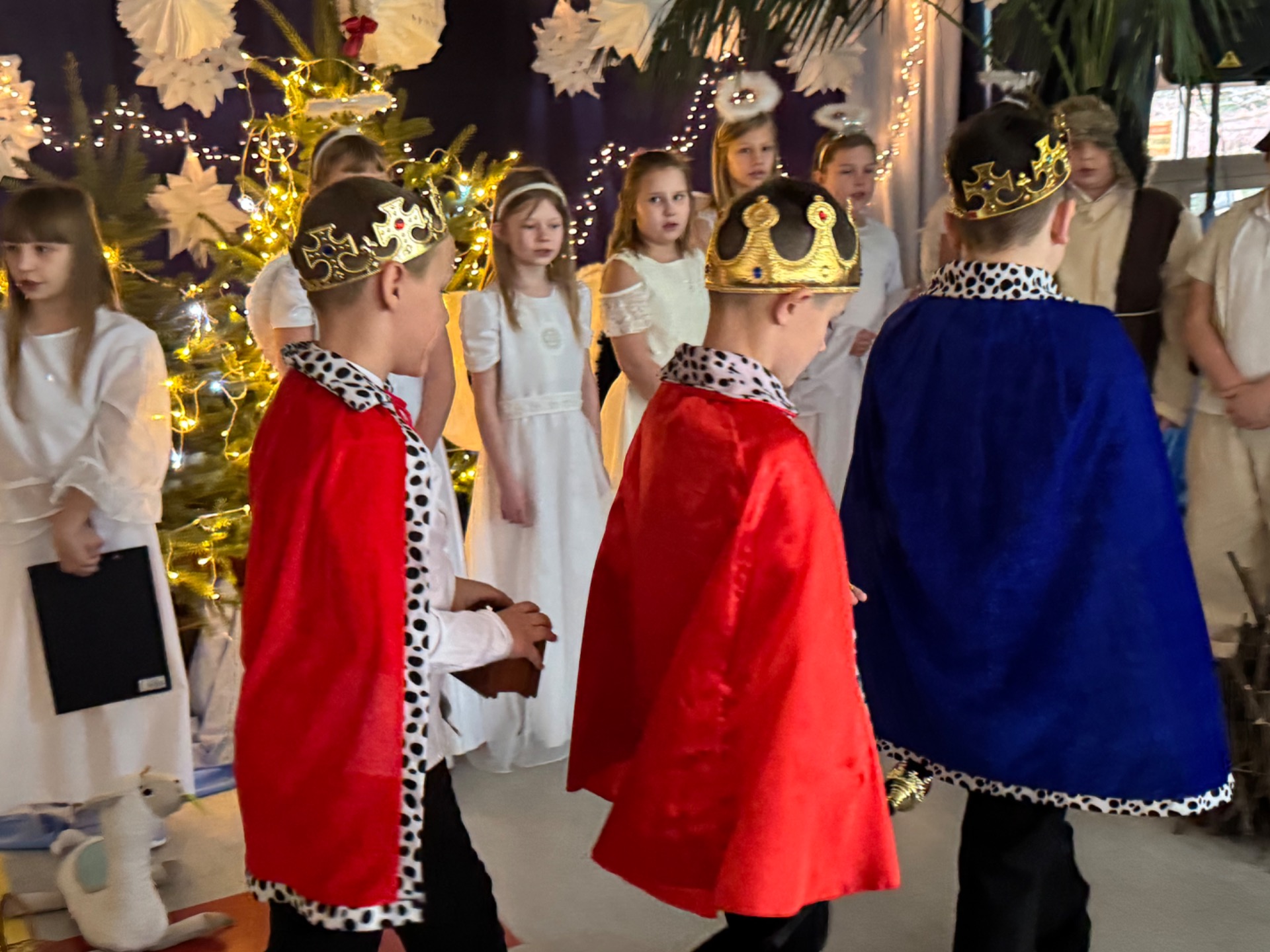 wprowadzili zaproszonych gości w ten świąteczny nastrój. Dzieci zaprezentowały się w przepięknych strojach. Doskonale wcieliły się w swoje role, dzięki temu pokazały swoje umiejętności aktorskie oraz wokalne. Scenki z życia nowo narodzonego Dzieciątka, Maryi i Józefa, pasterzy, mędrców i aniołów przeplatane były kolędami i pastorałkami. Ten magiczny czas jest chwilą na zastanowienie się nad samym sobą!