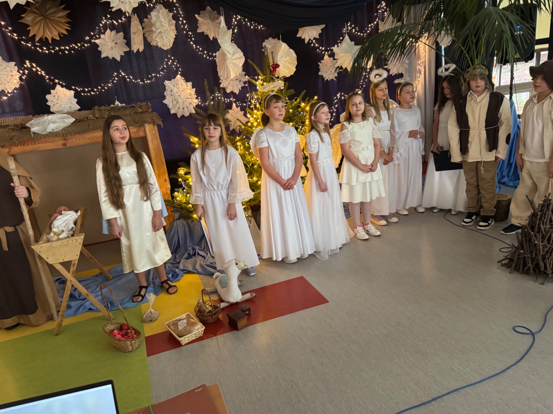 Nasza szkoła co roku przypomina o tych ważnych świętach jakim jest Boże Narodzenie. W dniu 18 grudnia 2025r uczniowie klas III wraz z wychowawcami