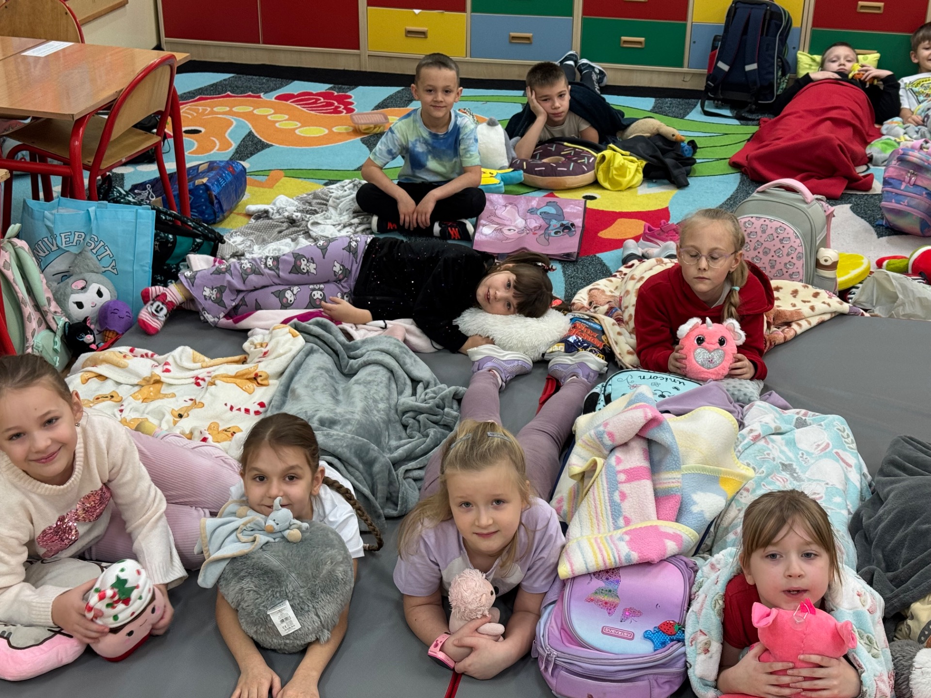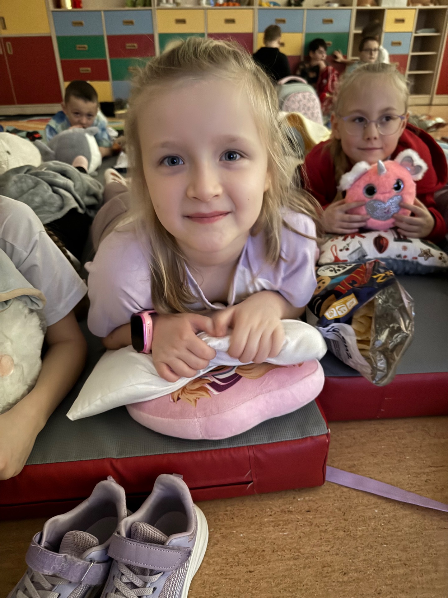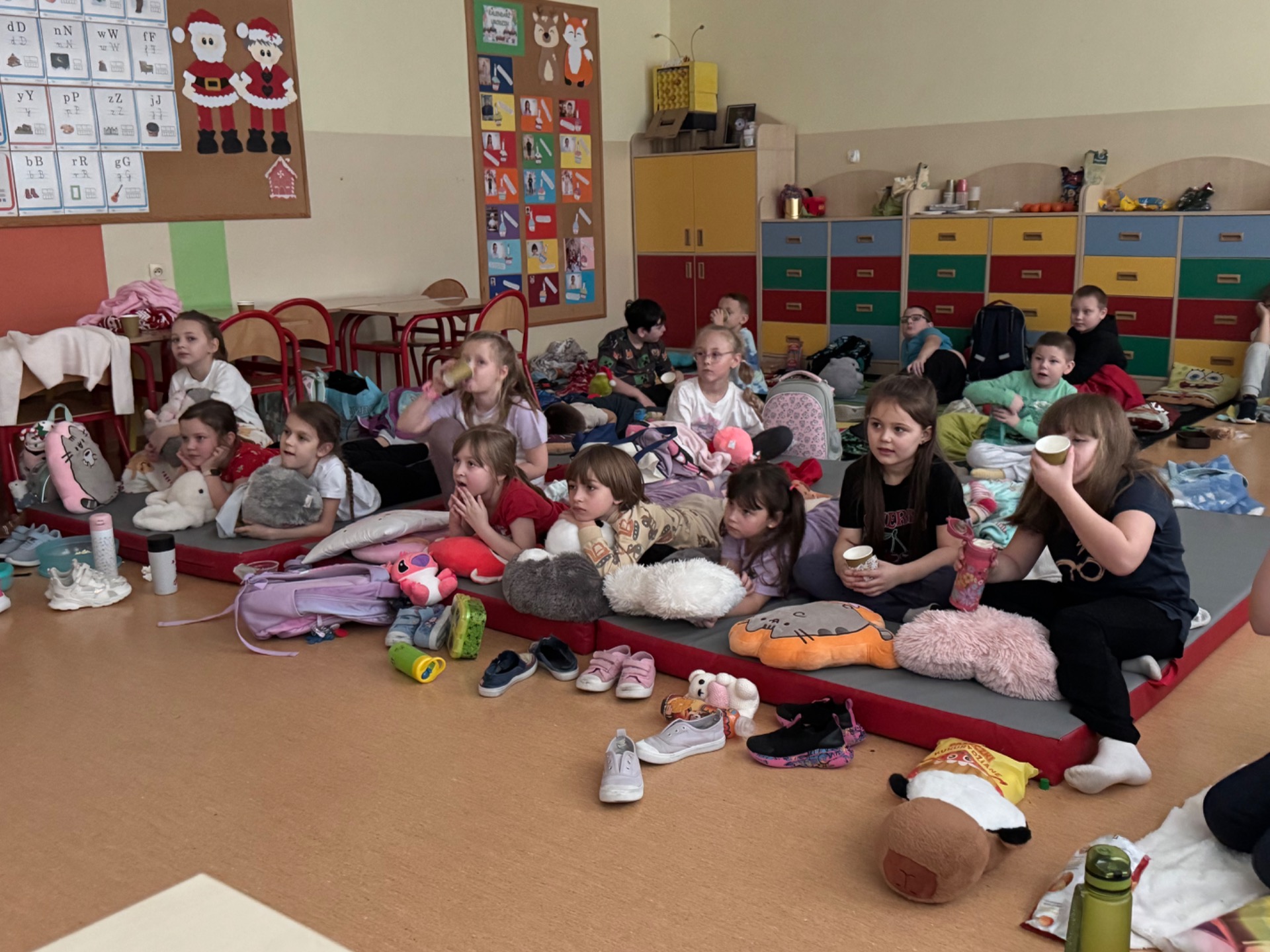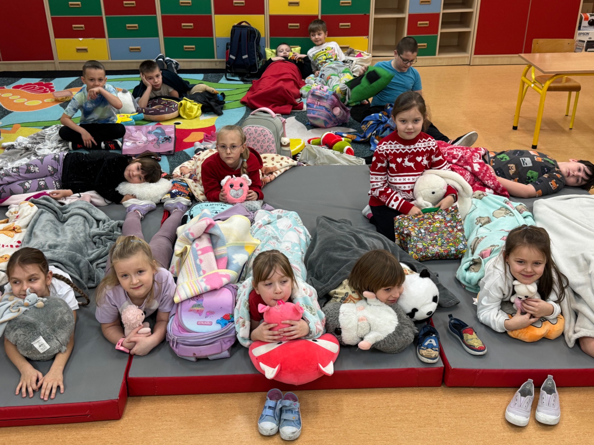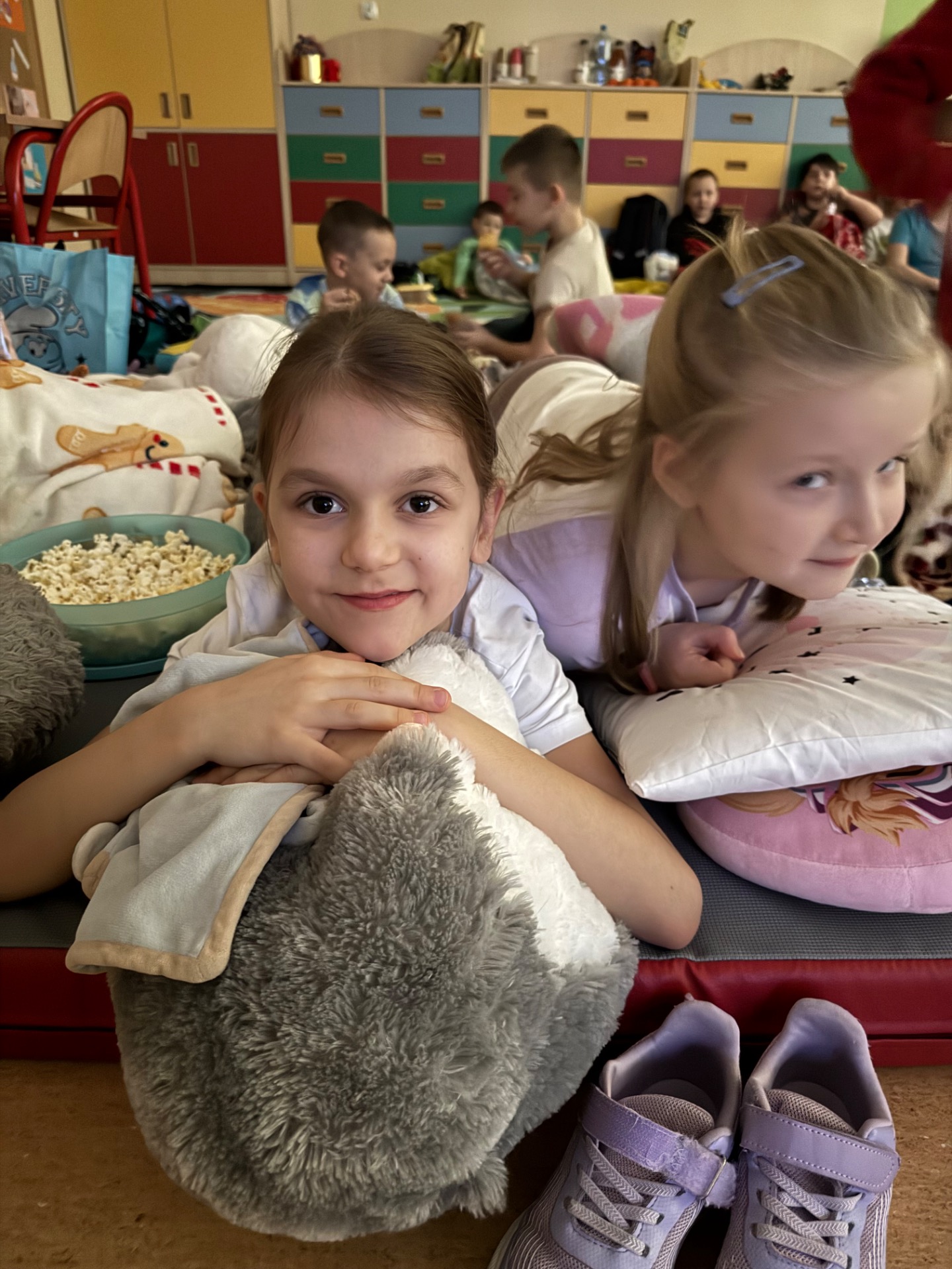 Uczniowie klasy 1b rozpoczęli przerwę świąteczną w najlepszy możliwy sposób – wspólnie oglądając bajkę, integrując się i testując, czy popcorn smakuje lepiej spod kocyka czy z poduszki 🍿🛋️