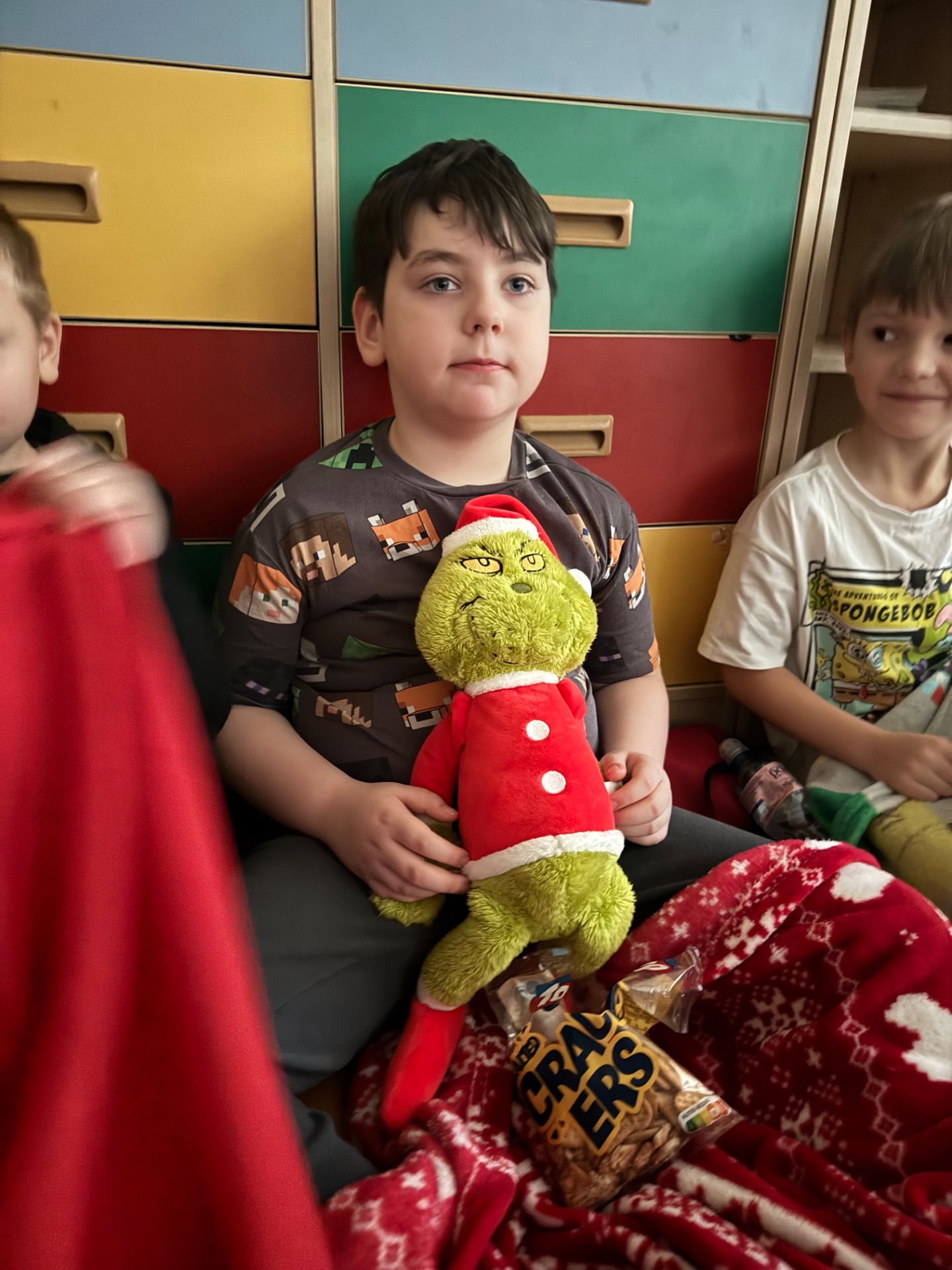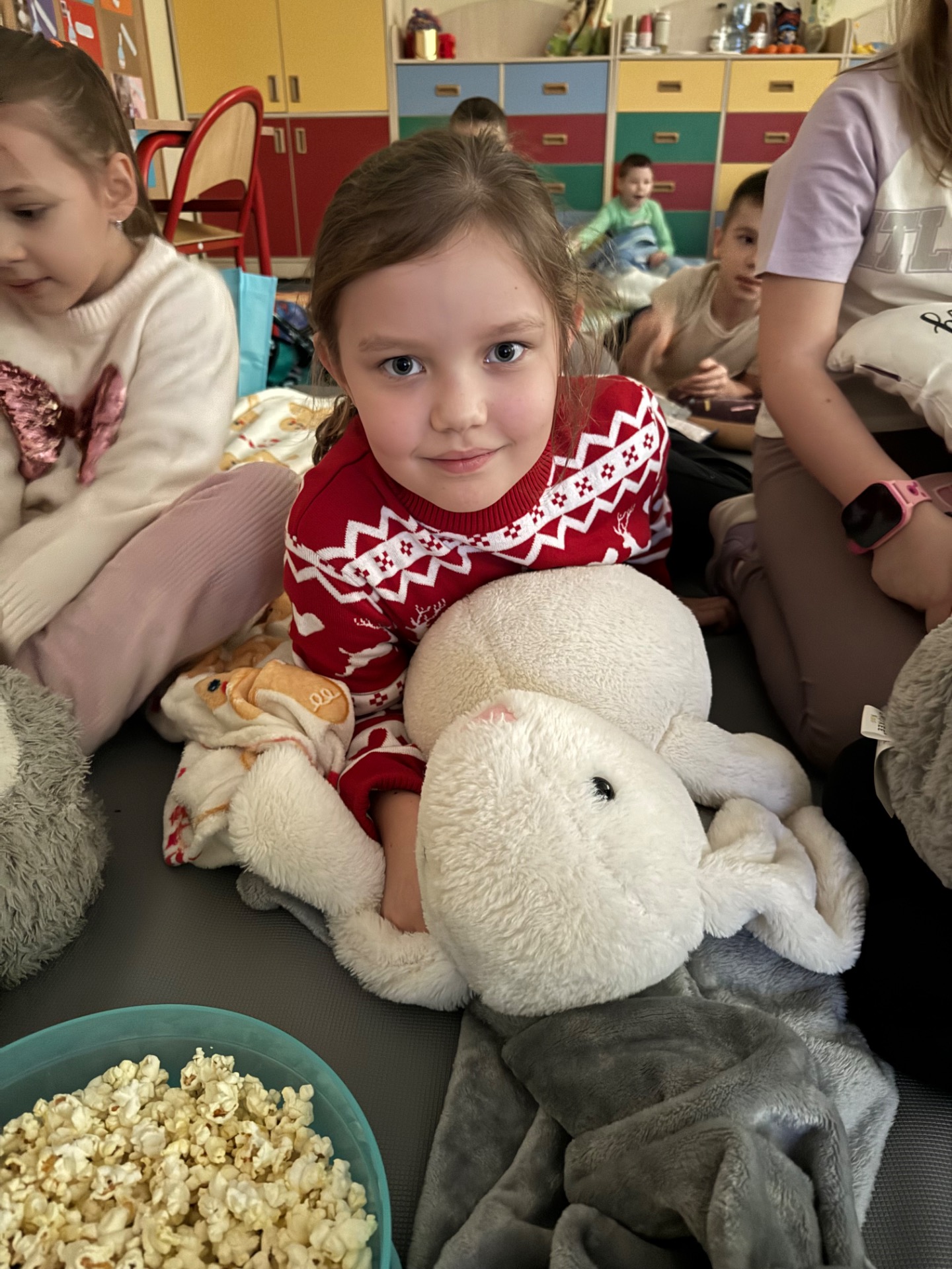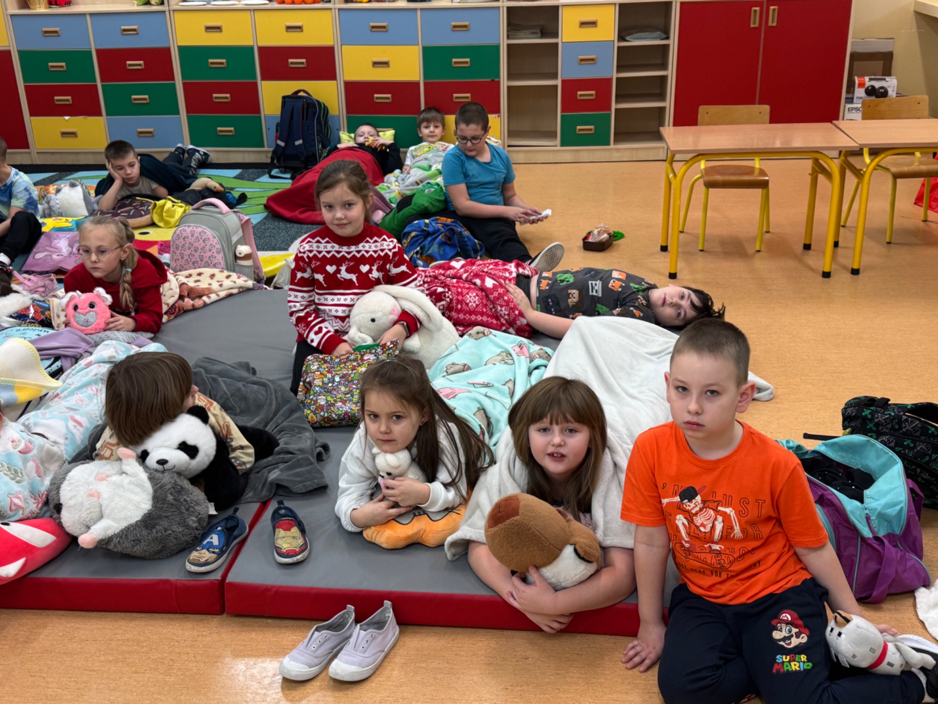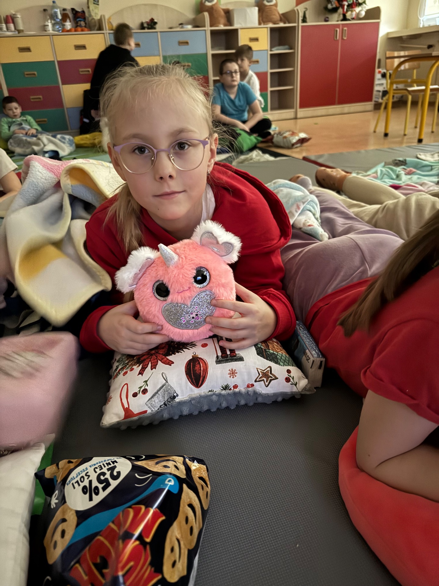 Uczniowie klasy 1b rozpoczęli przerwę świąteczną w najlepszy możliwy sposób – wspólnie oglądając bajkę, integrując się i testując, czy popcorn smakuje lepiej spod kocyka czy z poduszki 🍿🛋️