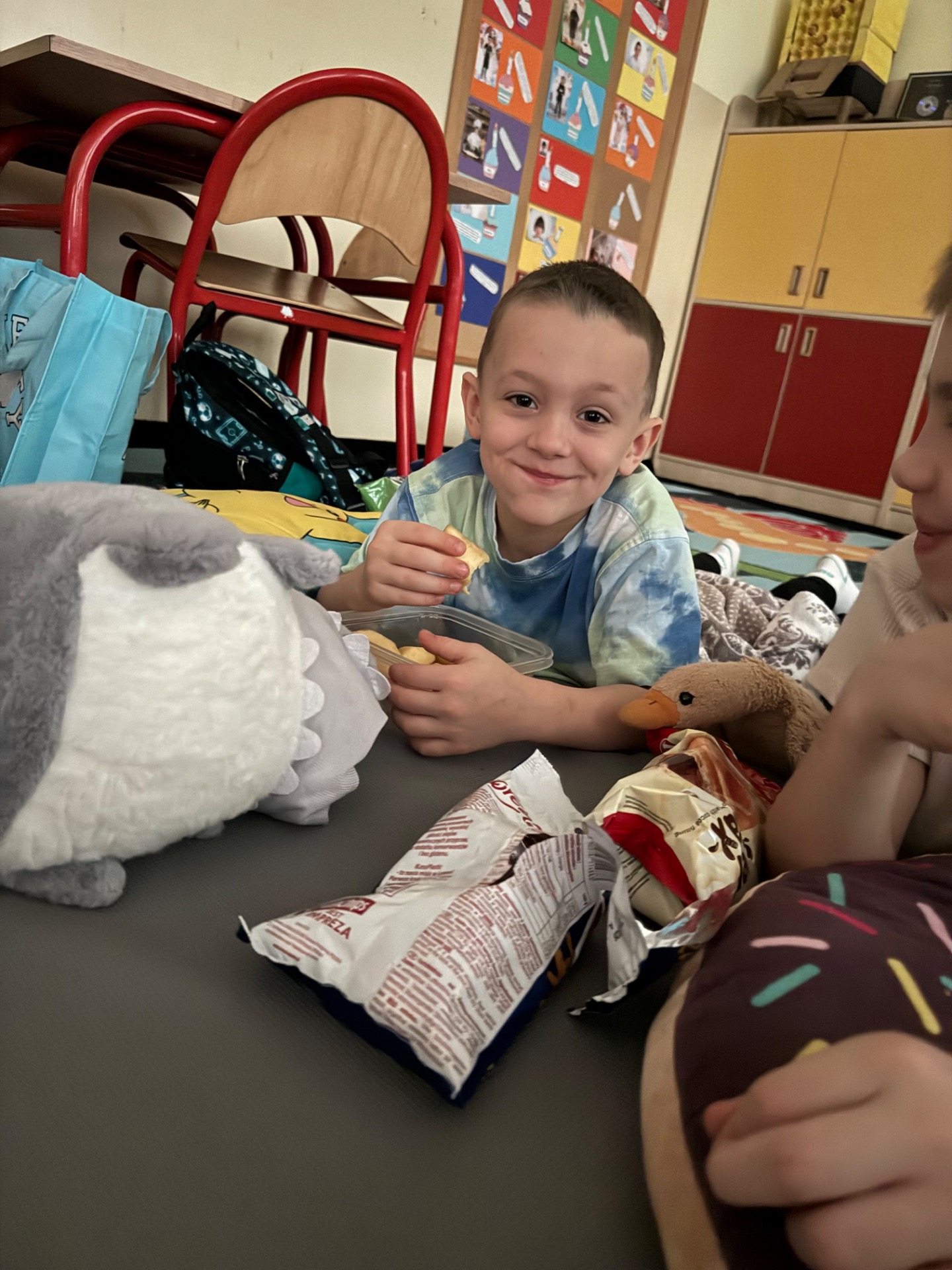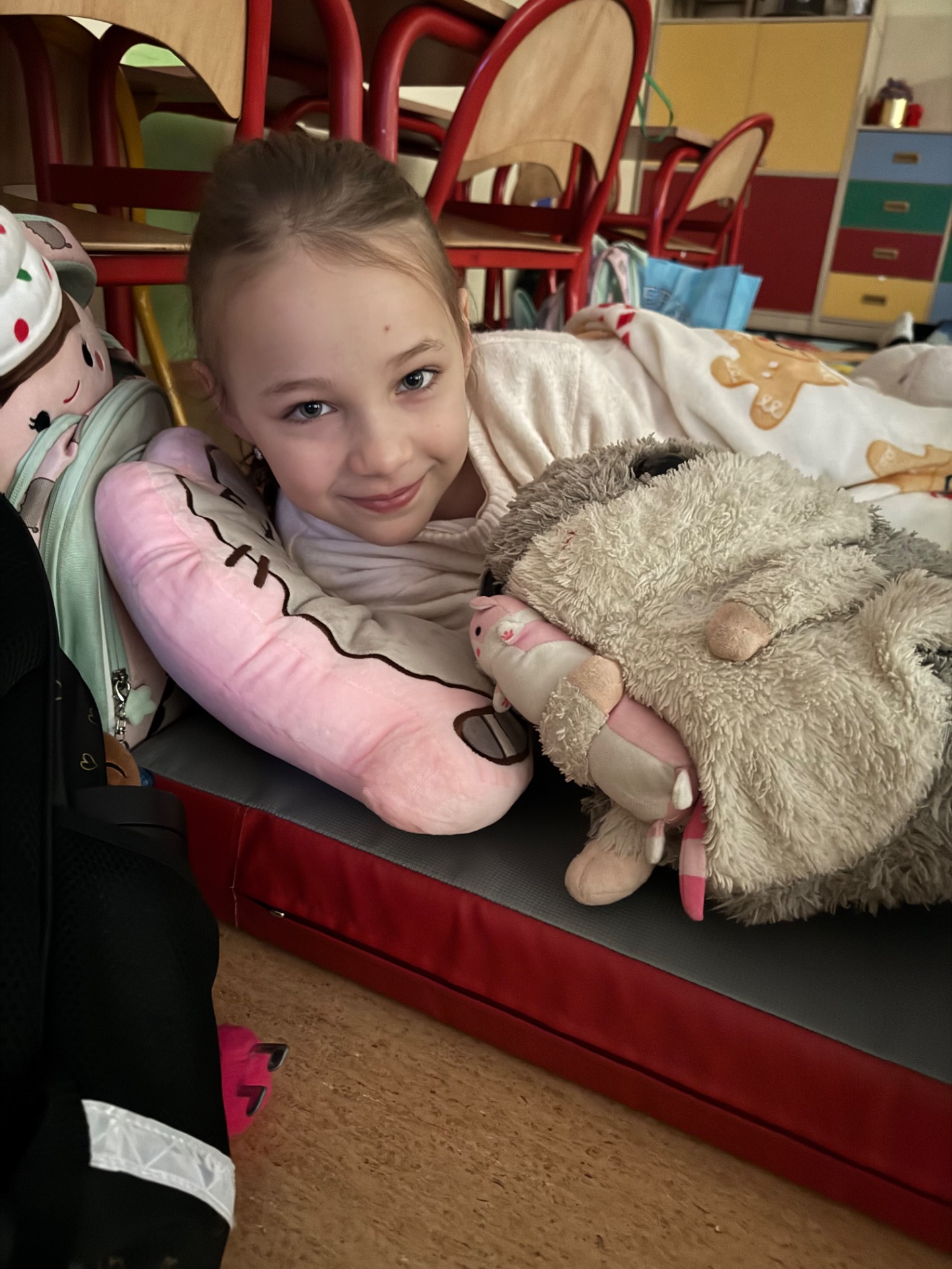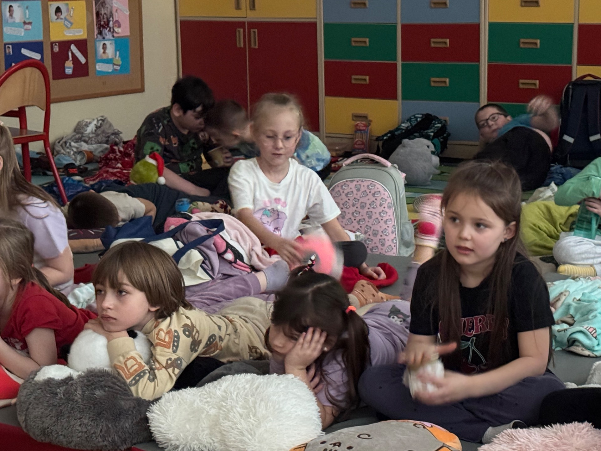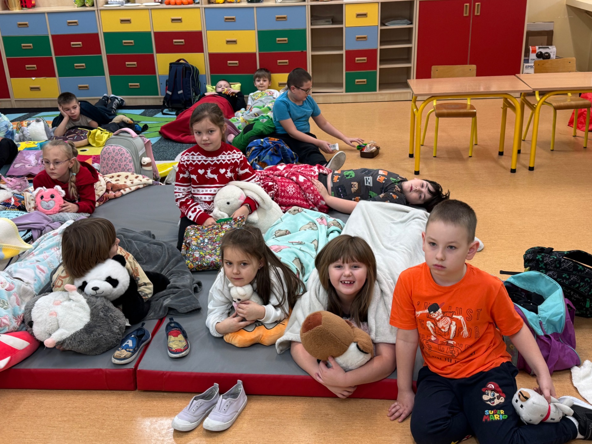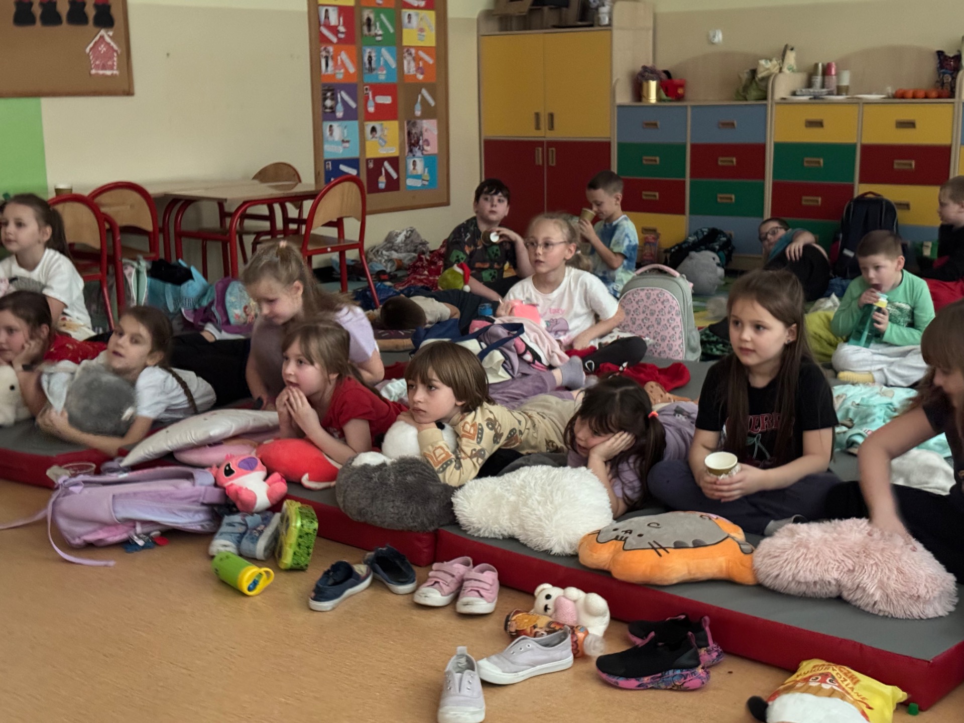 Uczniowie klasy 1b rozpoczęli przerwę świąteczną w najlepszy możliwy sposób – wspólnie oglądając bajkę, integrując się i testując, czy popcorn smakuje lepiej spod kocyka czy z poduszki 🍿🛋️