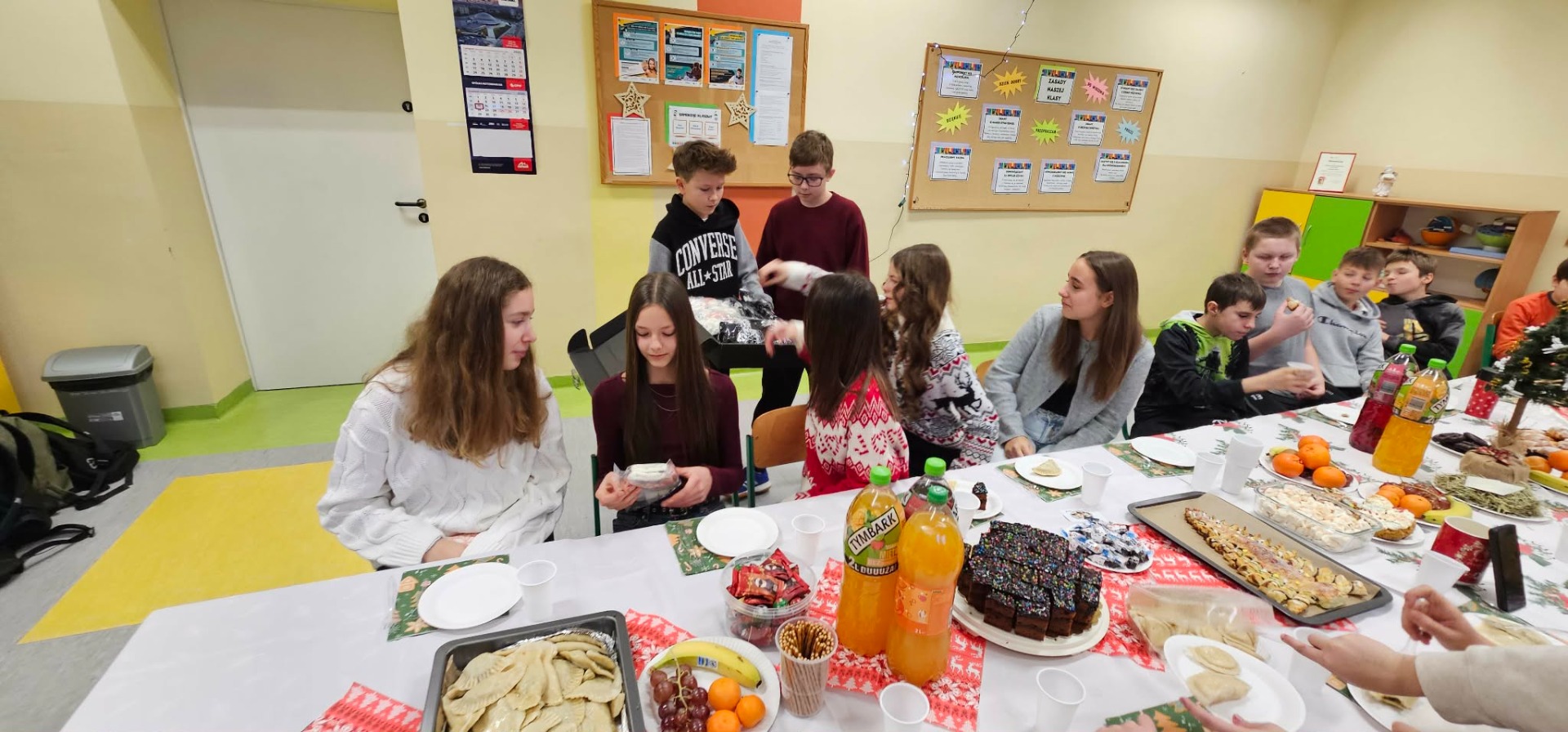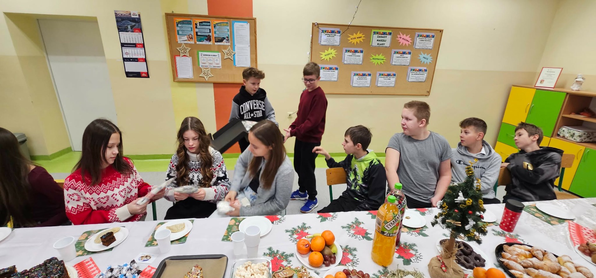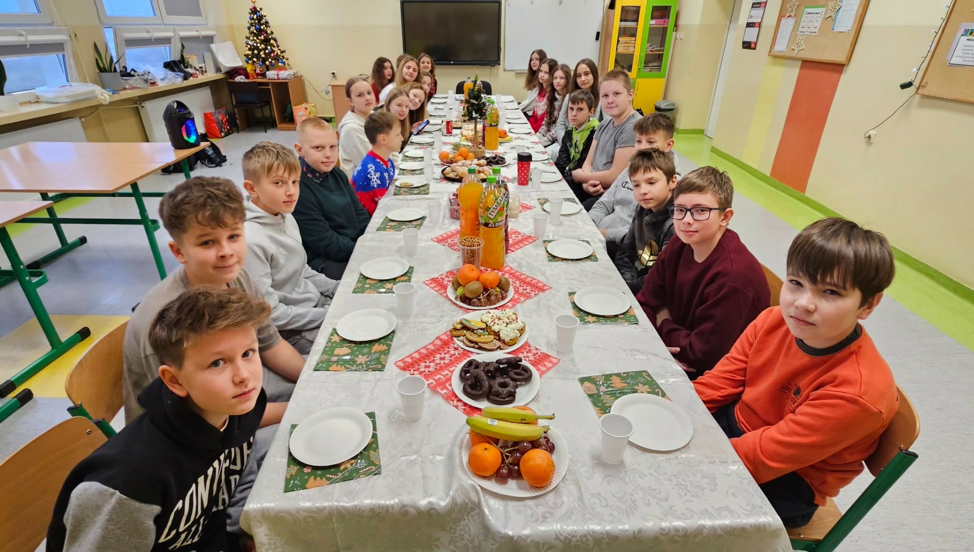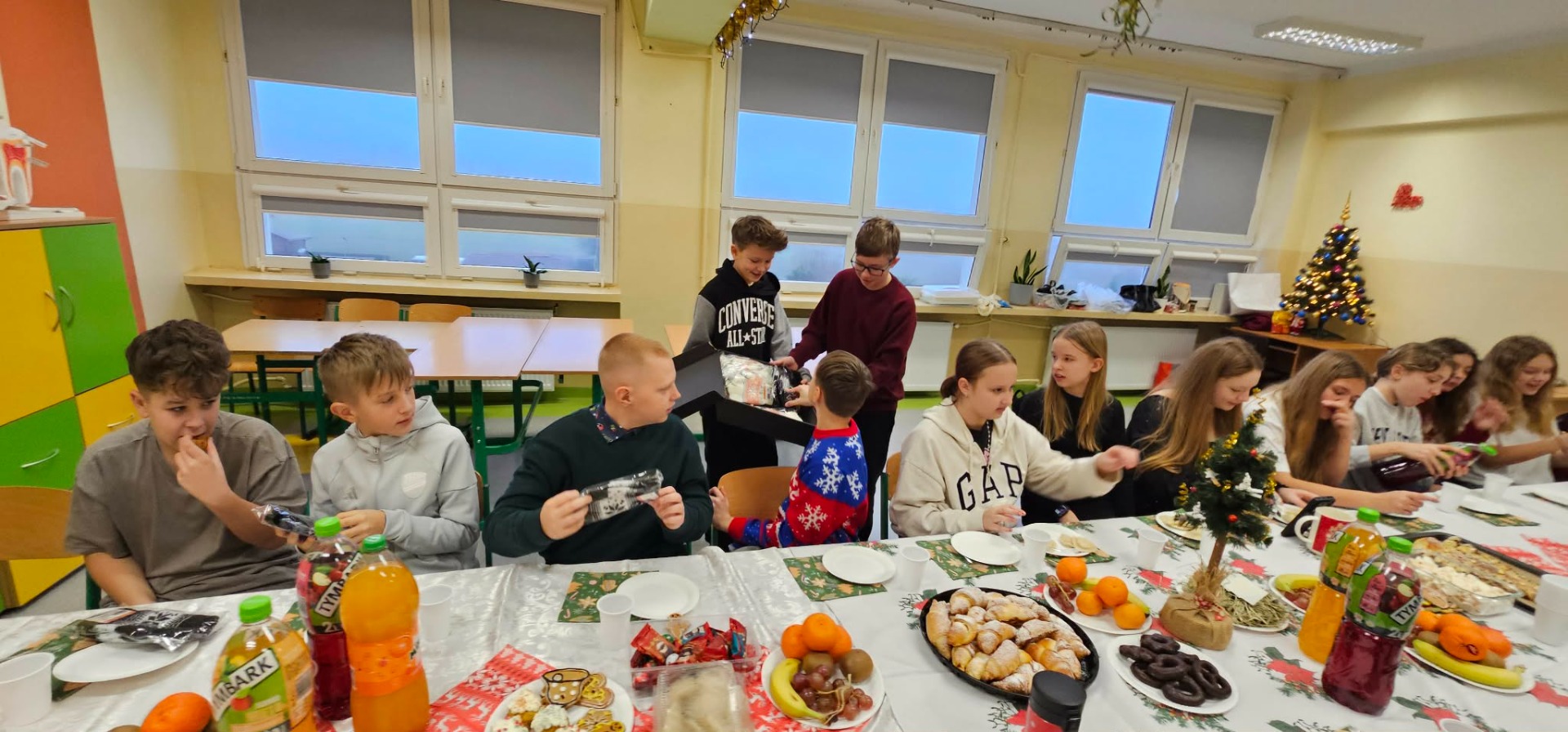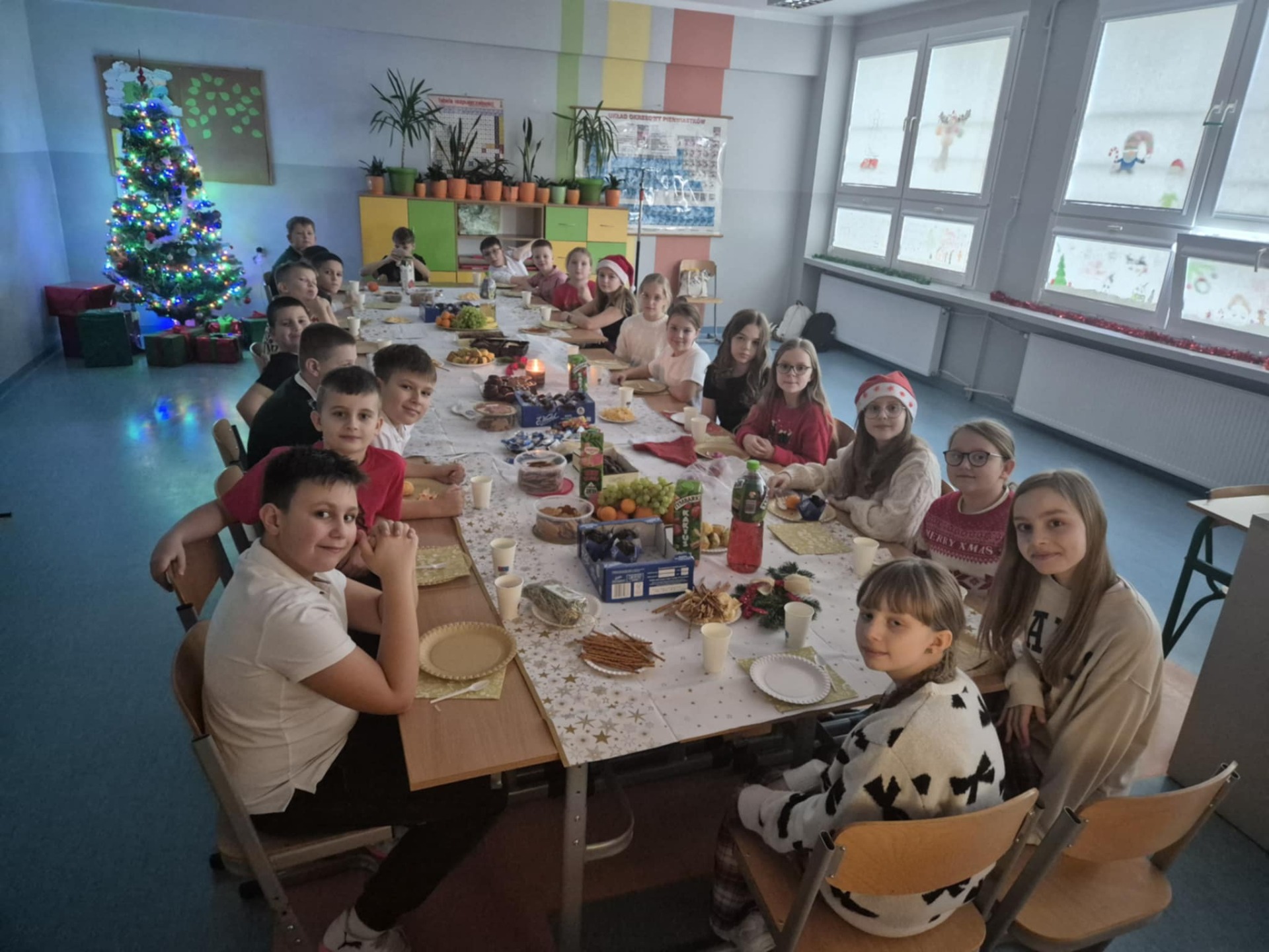 W minionym tygodniu w klasach 4–8 odbyły się klasowe spotkania wigilijne. Był to wyjątkowy czas wspólnego świętowania, rozmów oraz budowania pozytywnych relacji między uczniami i wychowawcami. Podczas wigilii uczniowie dzielili się opłatkiem, składali sobie świąteczne życzenia oraz wspólnie spędzali czas przy świątecznym poczęstunku. W wielu klasach nie zabrakło kolęd, dekoracji oraz miłej, świątecznej atmosfery. Spotkania te były doskonałą okazją do zatrzymania się na chwilę w przedświątecznym czasie i wprowadziły wszystkich w radosny nastrój zbliżających się Świąt Bożego Narodzenia.