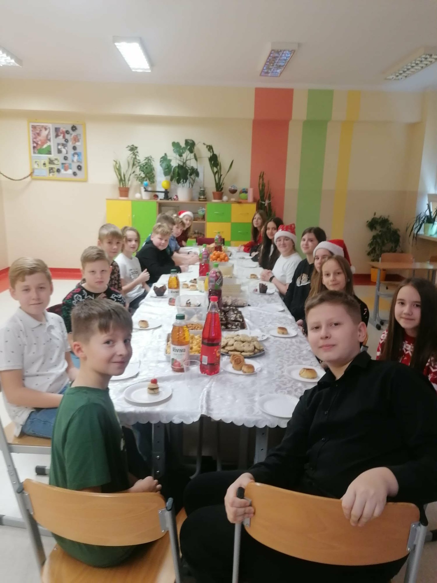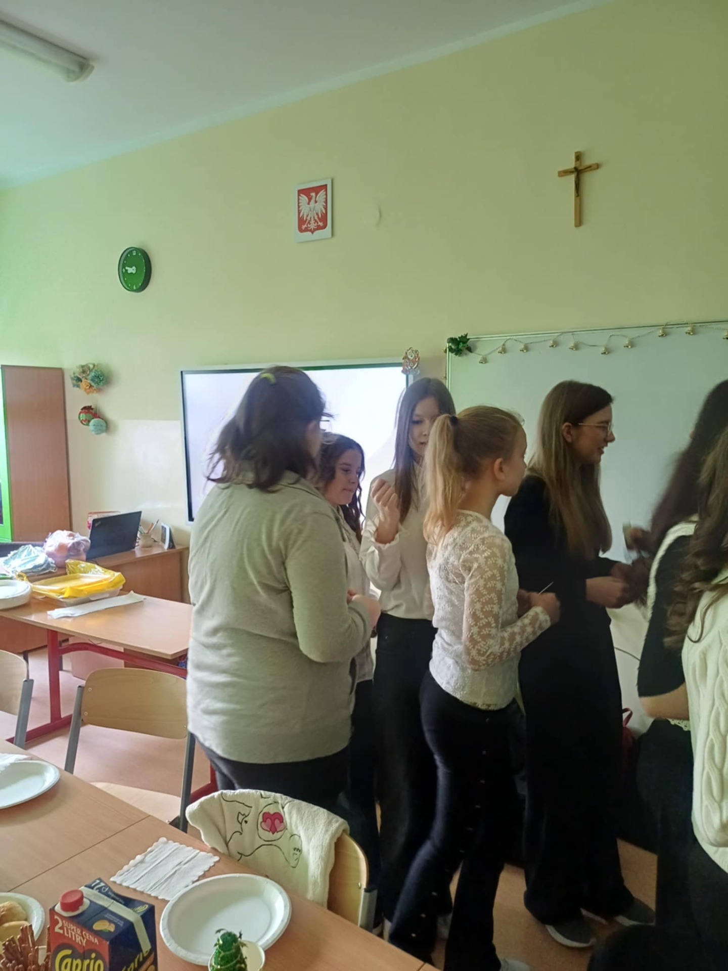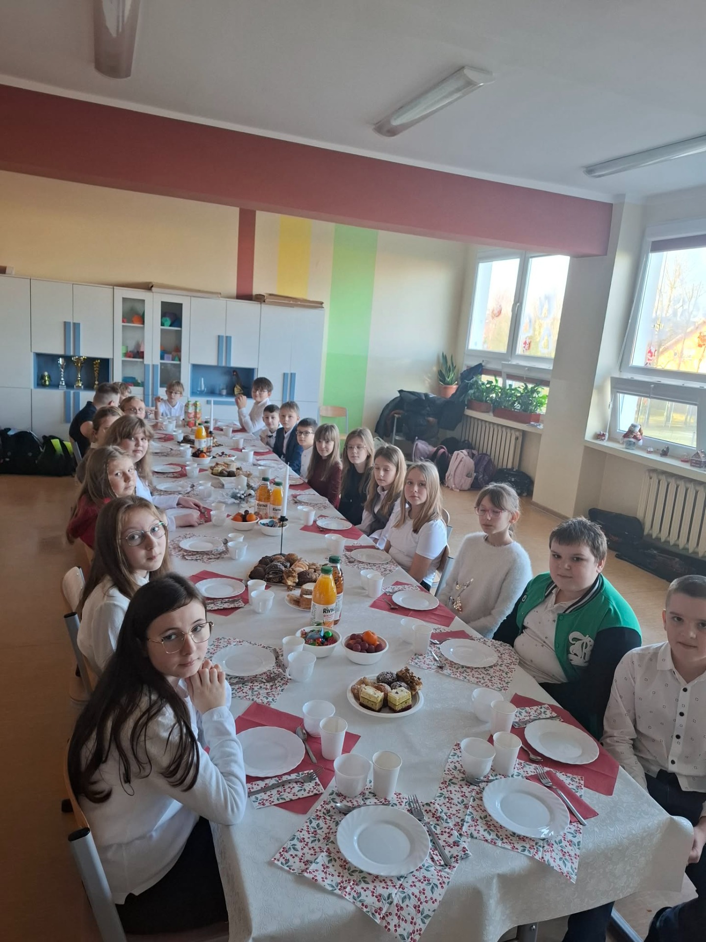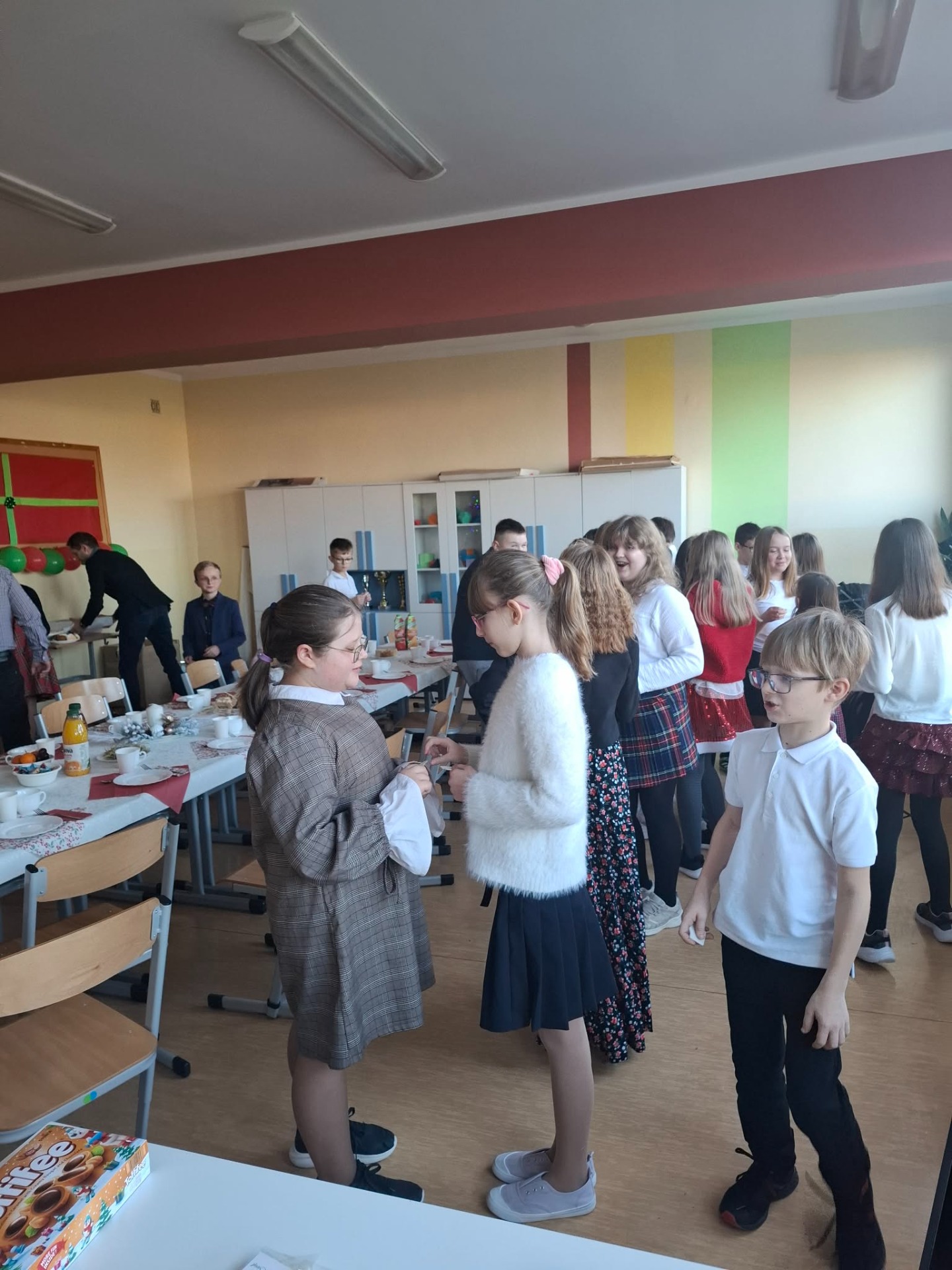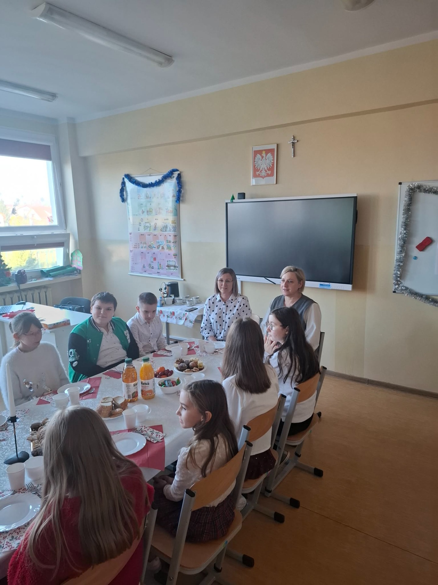 W minionym tygodniu w klasach 4–8 odbyły się klasowe spotkania wigilijne. Był to wyjątkowy czas wspólnego świętowania, rozmów oraz budowania pozytywnych relacji między uczniami i wychowawcami. Podczas wigilii uczniowie dzielili się opłatkiem, składali sobie świąteczne życzenia oraz wspólnie spędzali czas przy świątecznym poczęstunku. W wielu klasach nie zabrakło kolęd, dekoracji oraz miłej, świątecznej atmosfery. Spotkania te były doskonałą okazją do zatrzymania się na chwilę w przedświątecznym czasie i wprowadziły wszystkich w radosny nastrój zbliżających się Świąt Bożego Narodzenia.