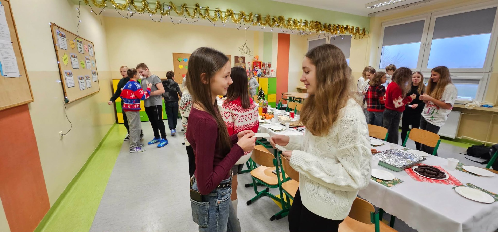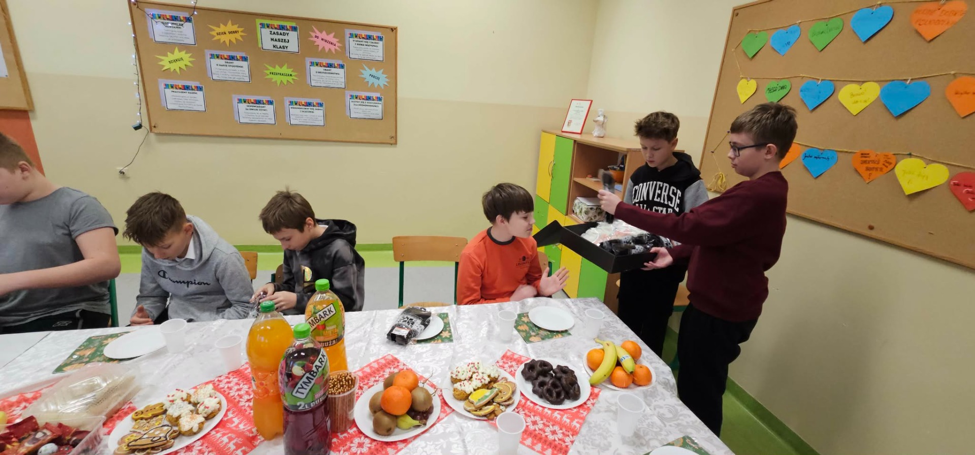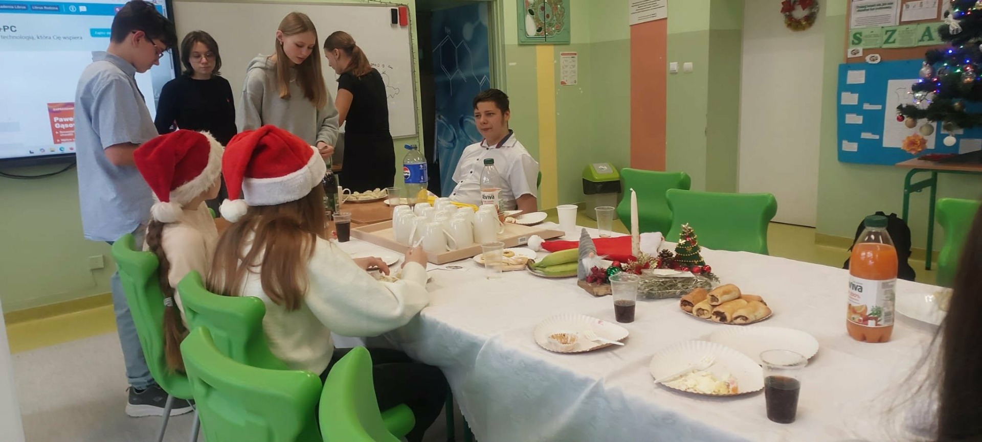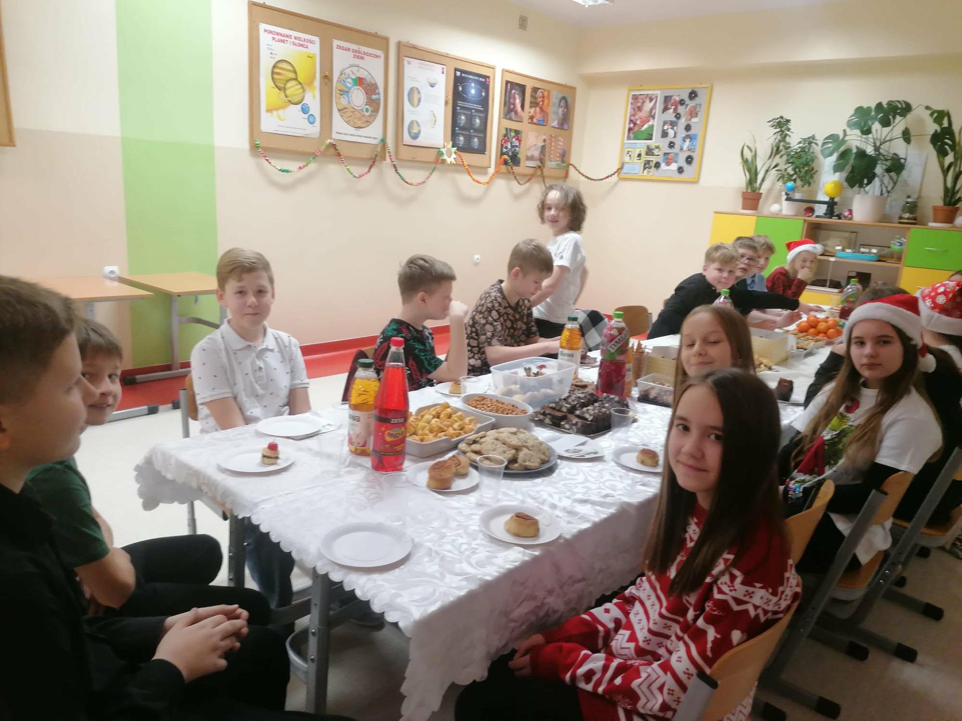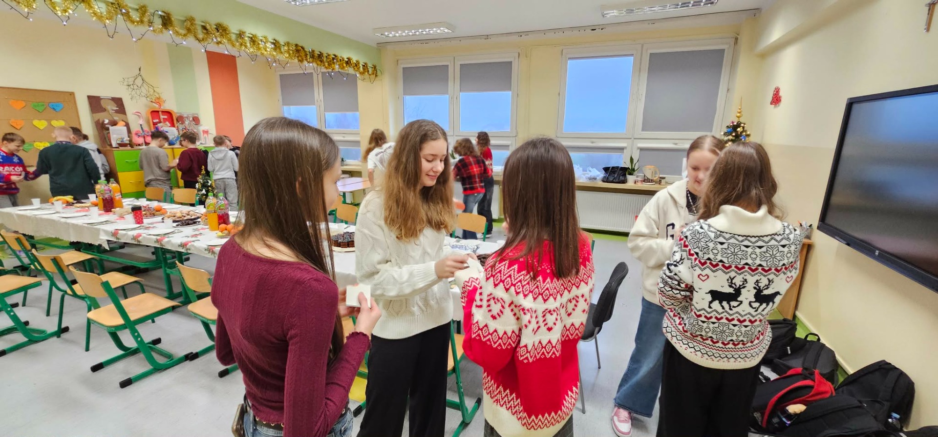 W minionym tygodniu w klasach 4–8 odbyły się klasowe spotkania wigilijne. Był to wyjątkowy czas wspólnego świętowania, rozmów oraz budowania pozytywnych relacji między uczniami i wychowawcami. Podczas wigilii uczniowie dzielili się opłatkiem, składali sobie świąteczne życzenia oraz wspólnie spędzali czas przy świątecznym poczęstunku. W wielu klasach nie zabrakło kolęd, dekoracji oraz miłej, świątecznej atmosfery. Spotkania te były doskonałą okazją do zatrzymania się na chwilę w przedświątecznym czasie i wprowadziły wszystkich w radosny nastrój zbliżających się Świąt Bożego Narodzenia.