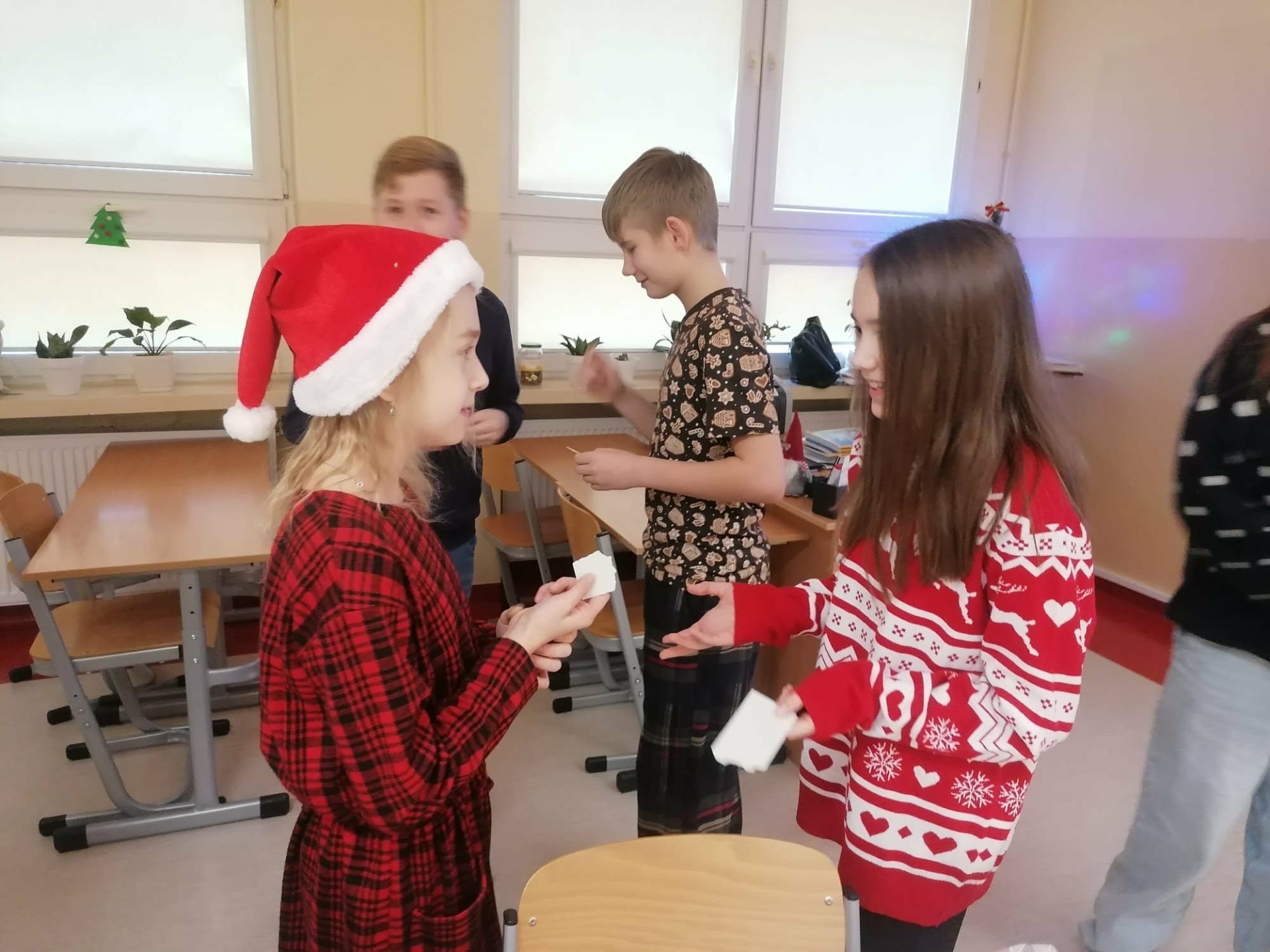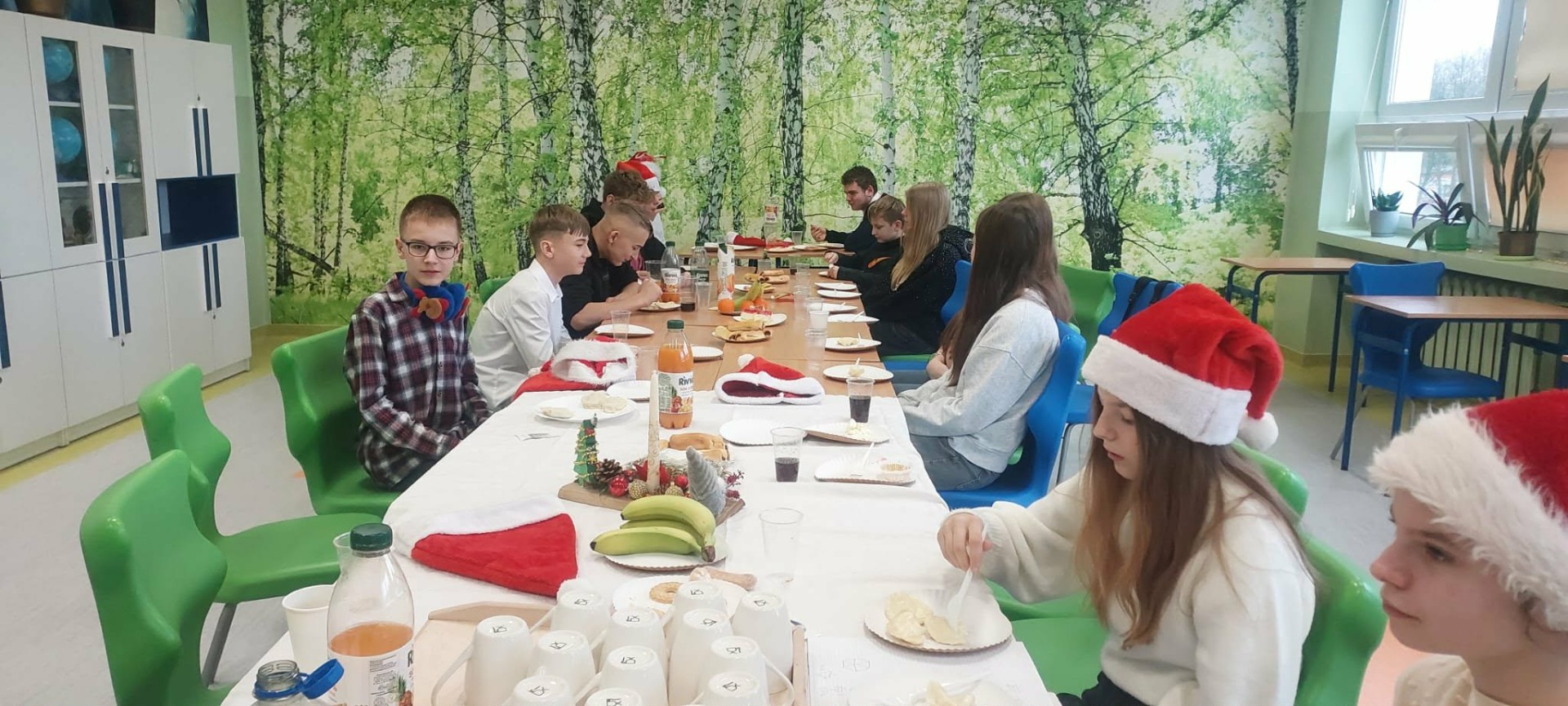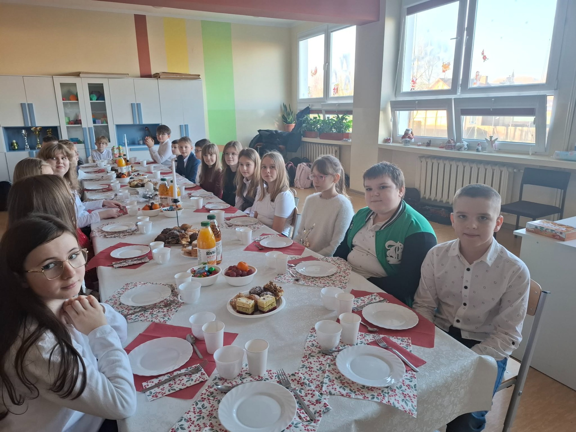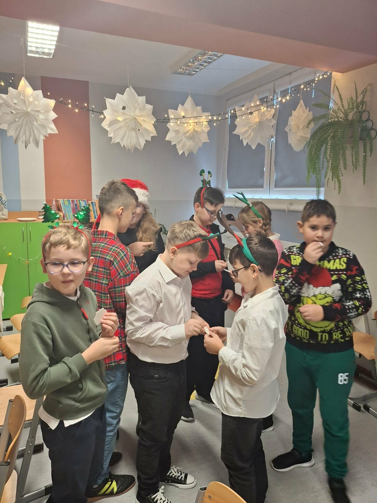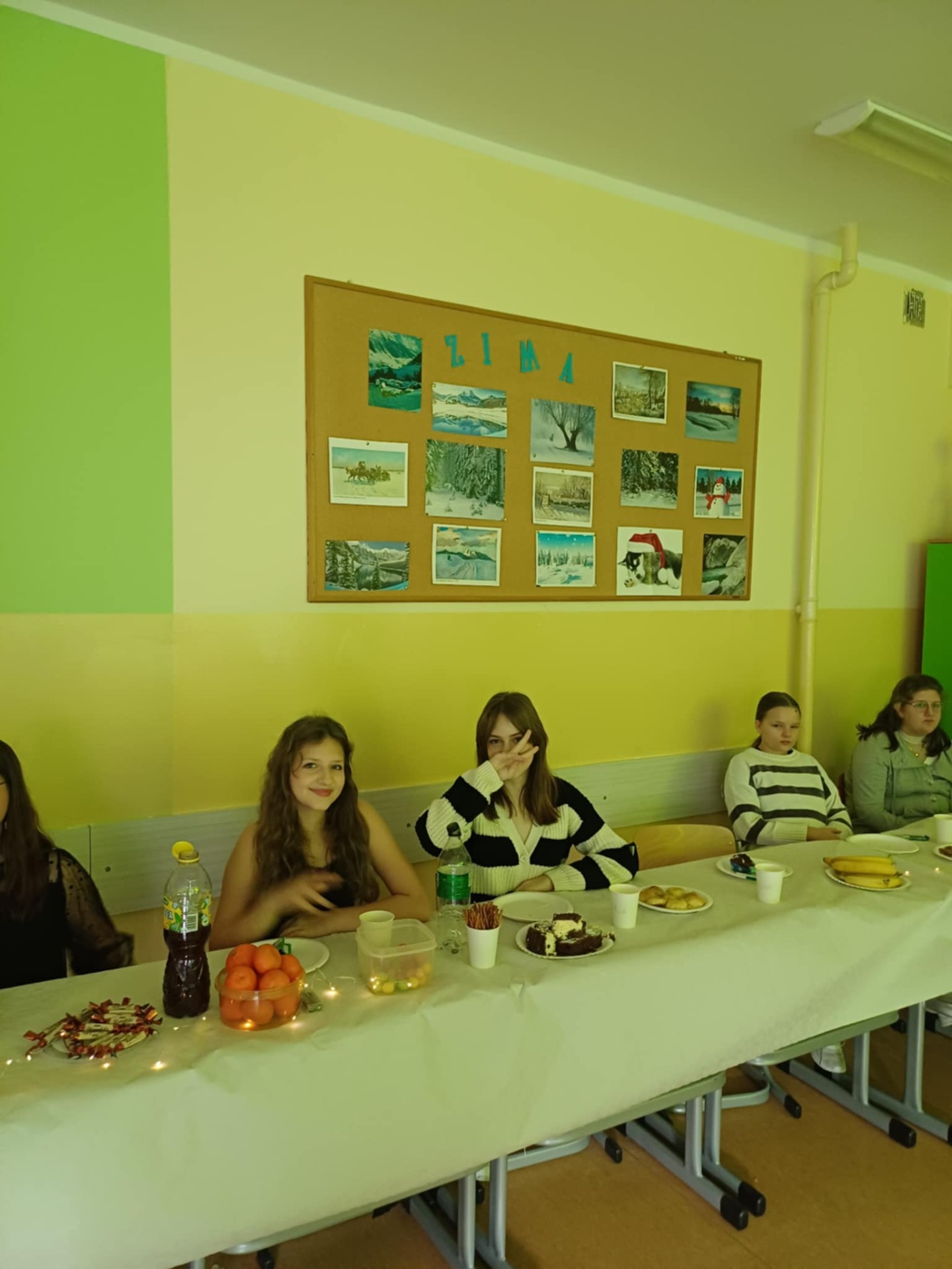 W minionym tygodniu w klasach 4–8 odbyły się klasowe spotkania wigilijne. Był to wyjątkowy czas wspólnego świętowania, rozmów oraz budowania pozytywnych relacji między uczniami i wychowawcami. Podczas wigilii uczniowie dzielili się opłatkiem, składali sobie świąteczne życzenia oraz wspólnie spędzali czas przy świątecznym poczęstunku. W wielu klasach nie zabrakło kolęd, dekoracji oraz miłej, świątecznej atmosfery. Spotkania te były doskonałą okazją do zatrzymania się na chwilę w przedświątecznym czasie i wprowadziły wszystkich w radosny nastrój zbliżających się Świąt Bożego Narodzenia.