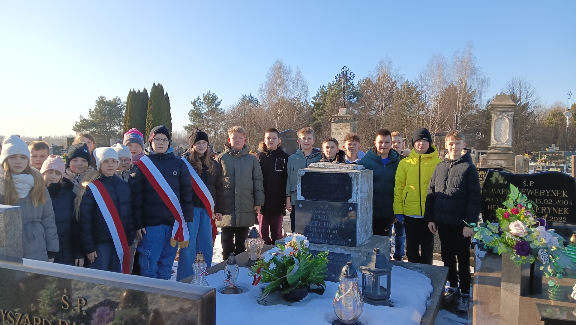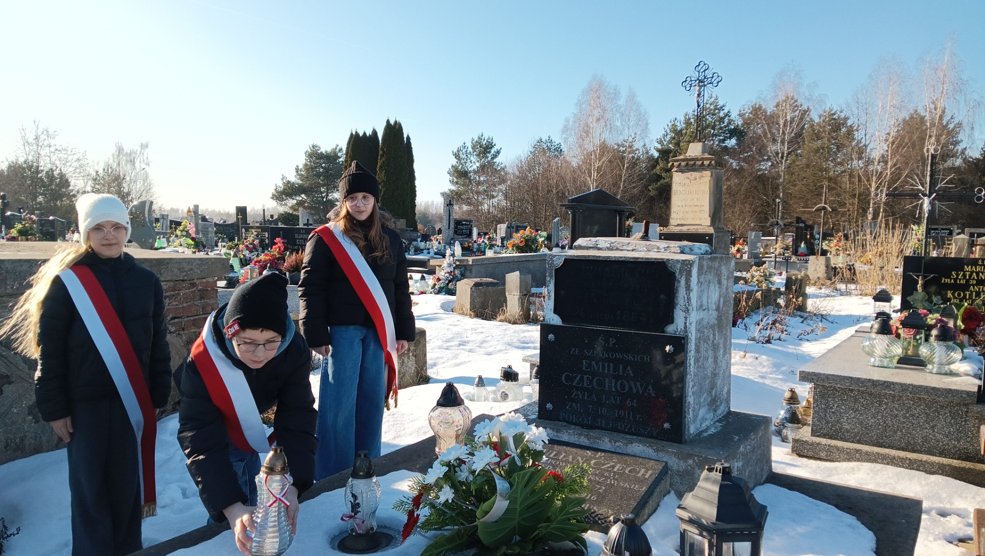 Dziś przypada 163. rocznica wybuchu Powstania Styczniowego. Dla upamiętnienia tej ważnej rocznicy uczniowie z kl. IV a wraz z nauczycielką historii odwiedzili cmentarz parafialny w Kamieńsku, gdzie w hołdzie poległym w walce z rosyjskim zaborcą zapalili znicz na mogile Powstańca Styczniowego Juliana Czecha. Należy pamiętać, że za udział naszych mieszkańców w Powstaniu, miasto Kamieńsk utraciło prawa miejskie w 1870 roku.