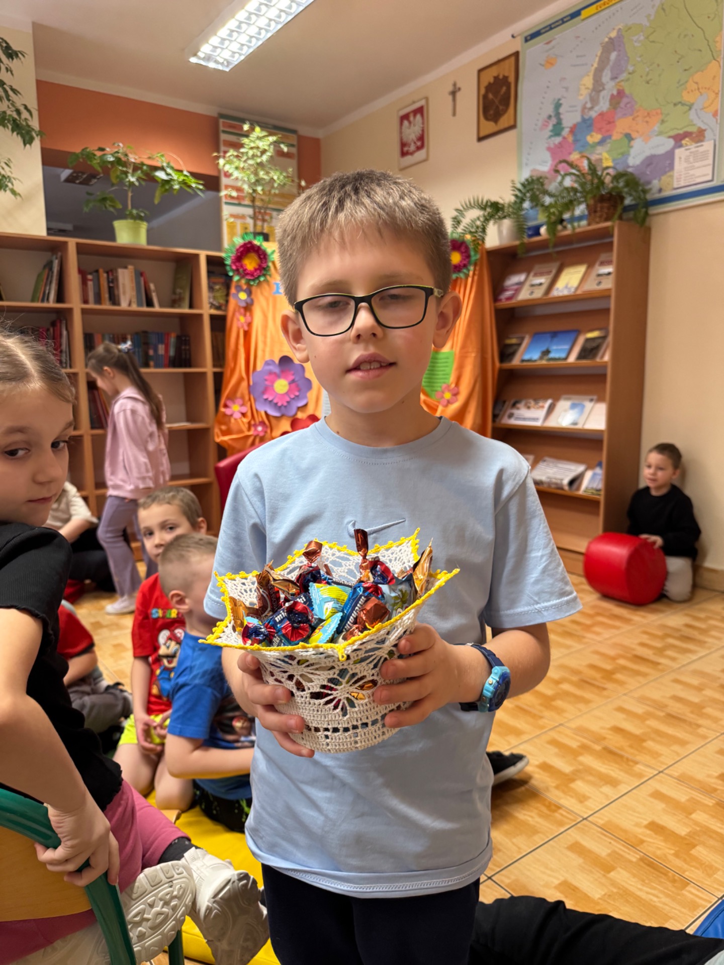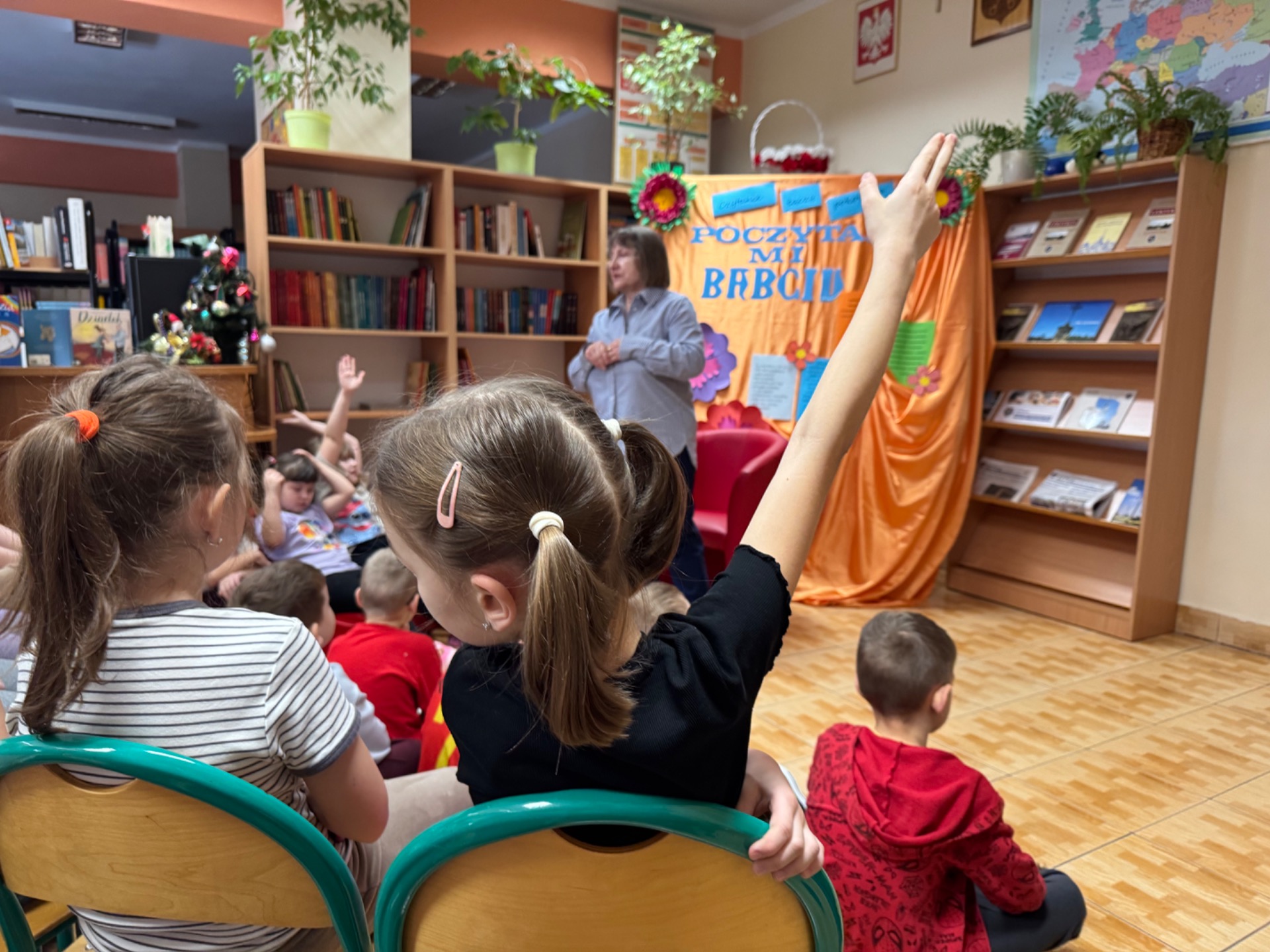 w bibliotece szkolnej świętowano Dzień Babci, organizując imprezę Poczytaj mi Babciu. Celem uroczystości było propagowanie wśród najmłodszych literatury dziecięcej, wzmacnianie więzi z najbliższą rodziną, a w szczególności z seniorami i kształtowanie szacunku do nich. Wspólne czytanie to cenna tradycja łącząca pokolenia przez literaturę. Wspólna lektura buduje relacje i łączy światy.
