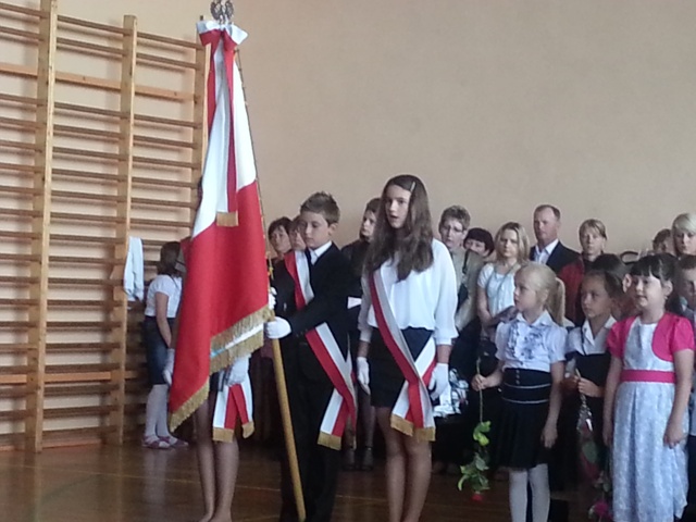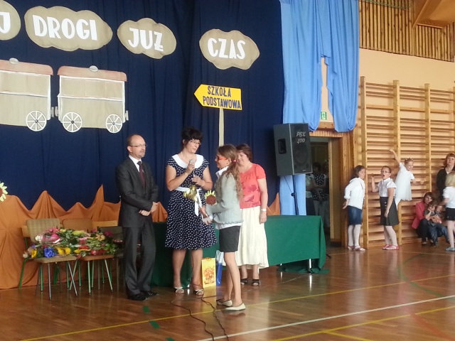 Ceremonię rozpoczęto od przywitania wszystkich zebranych, wśród których znaleźli się nie tylko uczniowie, nauczyciele I pracownicy obsługi, ale także rodzice oraz przedstawiciele Urzędu Miasta w Kamieńsku. Po odśpiewaniu hymnu państwowego i szkolnego przedstawiciele klas piątych zaprezentowali krótką część artystyczną wypełnioną lekkimi, zabawnymi tekstami. Następnie głos zabrała Pani Dyrektor, Ewa Gronostaj Urbańska. Wraz z Panią Wicedyrektor, Małgorzatą Łęską, i Burmistrzem Miasta, Panem Bogdanem Pawłowskim, wręczali nagrody uczniom wyróżniającym się w nauce. Pochwał nie szczędzono także ich rodzicom, którzy otrzymali specjalne listy gratulacyjne za trud włożony w wychowanie dzieci.