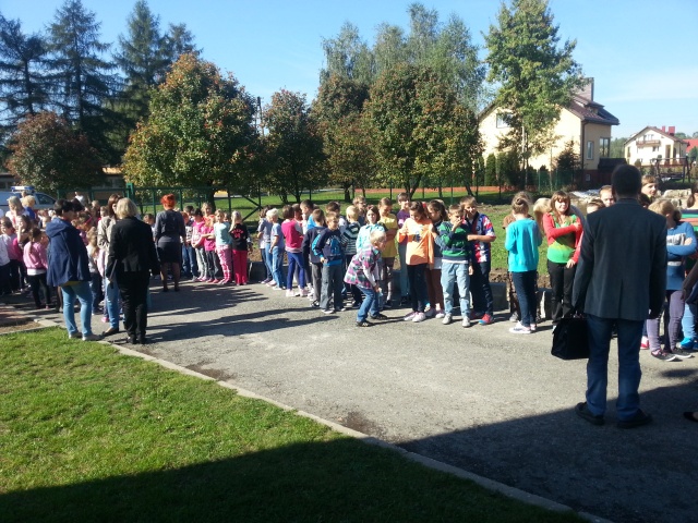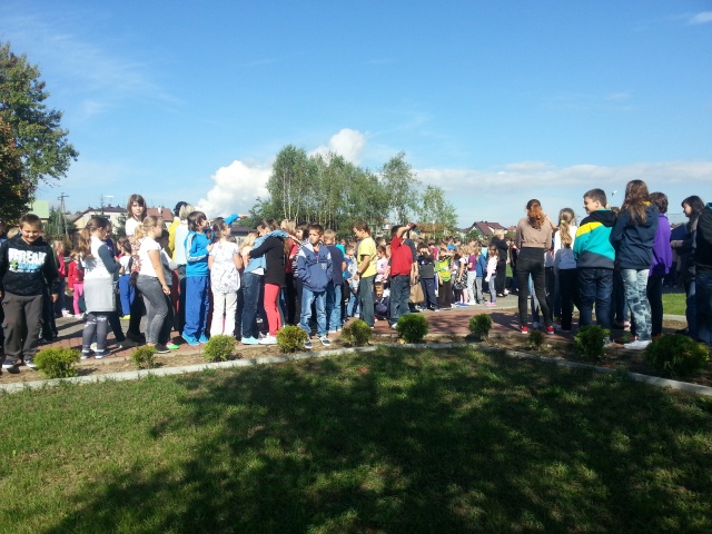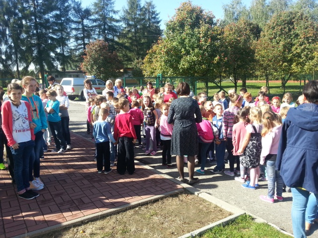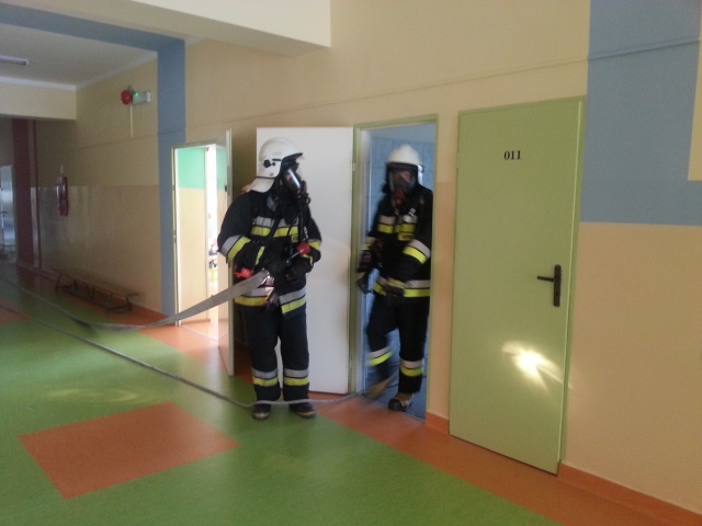 Dnia 18 września o godzinie 10.17. w naszej szkole rozległ się głośny, ciągły sygnał dźwiękowy. To alarm wzywający do opuszczenia budynku. W szkole rozpoczęła się ewakuacja. Wszyscy sprawnie zaczęli wychodzić z sal. Po opuszczeniu szkoły uczniowie pod opieką nauczycieli udali się w bezpieczne miejsca na boisku szkolnym. Po chwili dzielni strażacy weszli do budynku i…