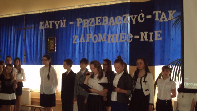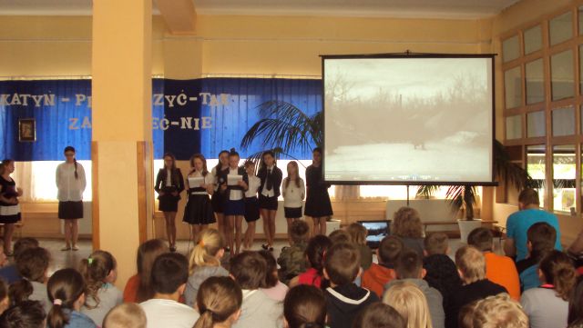 W tym roku obchodziliśmy 74. rocznicę zbrodni katyńskiej i 4. rocznicę katastrofy smoleńskiej. Dlatego też w naszej szkole odbył się uroczysty apel. Uczniowie pięknie recytowali wiersze i śpiewali pieśni żołnierskie. Uroczystość stała się okazją do poznania historii i skłoniła do refleksji i zadumy. Apel został przygotowany przez uczniów klasy IV - VI pod opieką Pani Magdaleny Madejskiej, oraz wsparciu Pani Marzeny Górnej-Turlejskiej odpowiedzialnej za oprawę muzyczną.