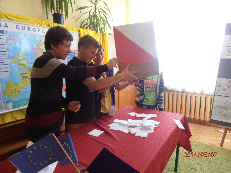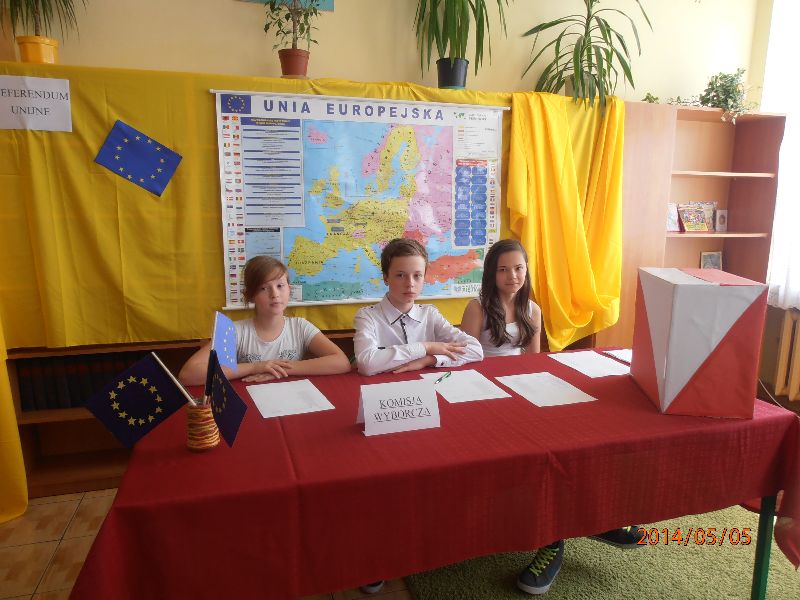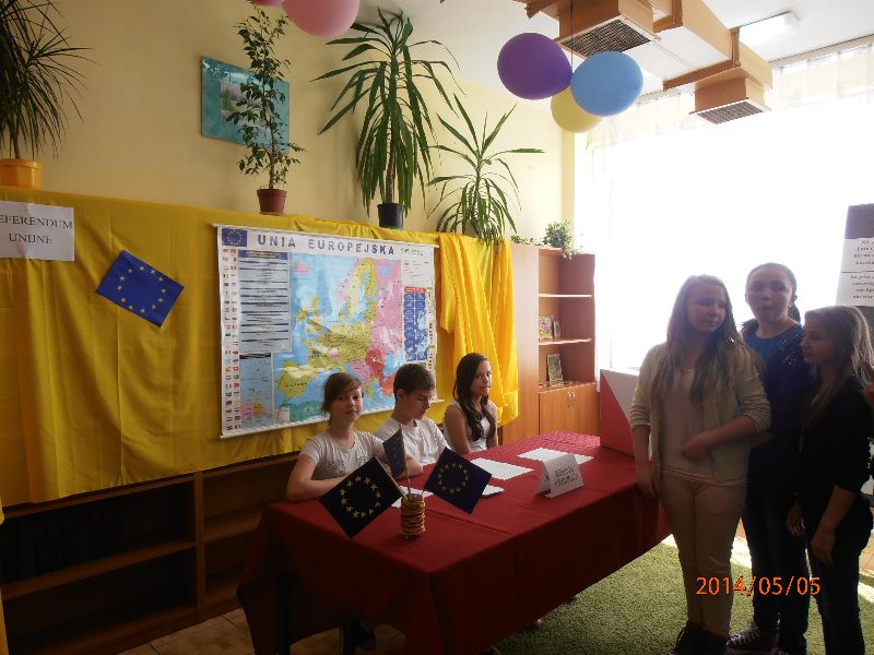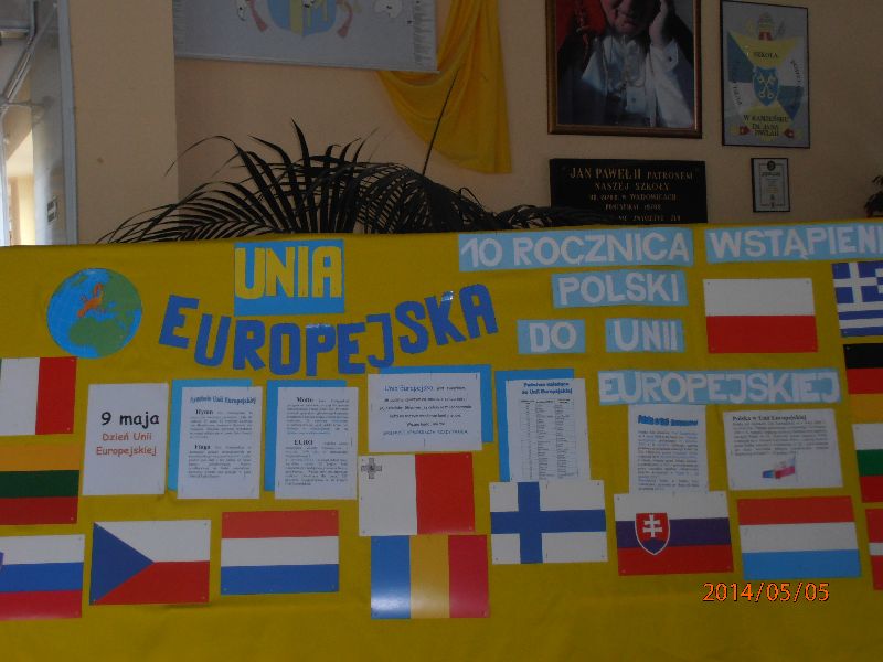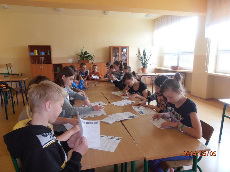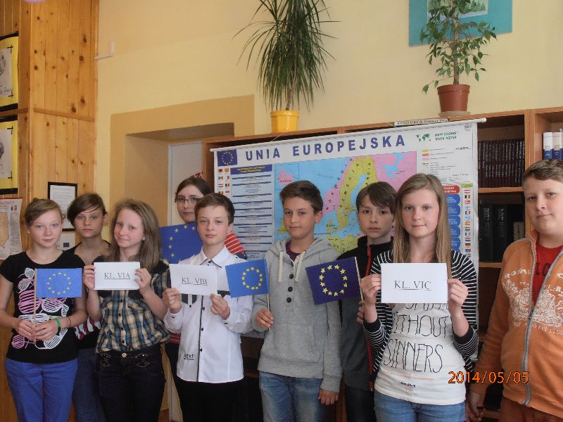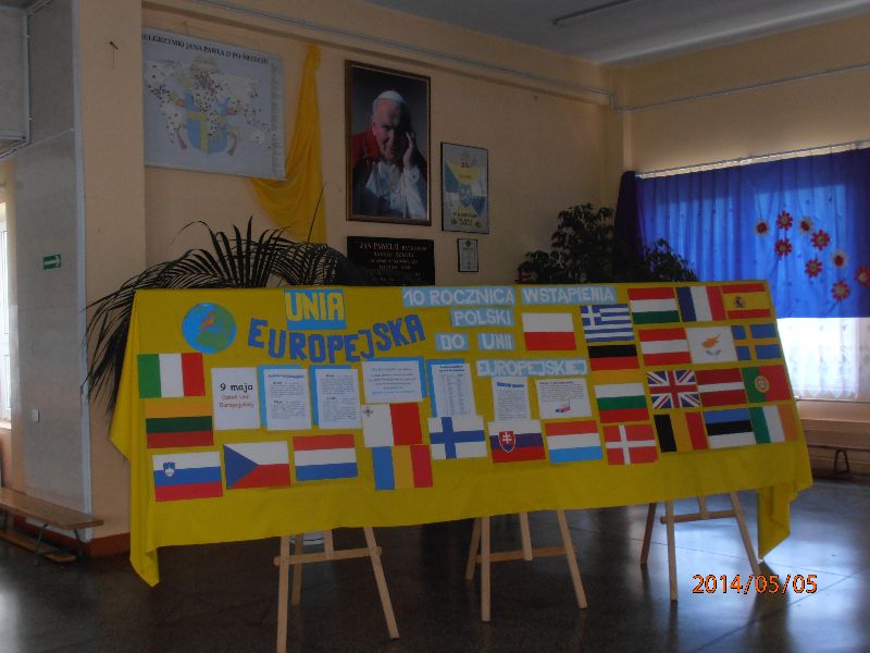 1 maja 2014r. obchodziliśmy 10. rocznicę przystąpienia Polski do Unii Europejskiej. Z tej okazji w naszej szkole realizowano projekt edukacyjny pod hasłem „Czy Unia Europejska jest organizacją jednoczącej się Europy?”. Głównym celem projektu była popularyzacja wiedzy dotyczącej Unii Europejskiej, integracja treści przedmiotowych wokół zjednoczonej Europy oraz integrowanie się społeczności klasowej poprzez wspólne działania. Projekt zawierał wybrane treści z podstawy programowej. Adresowany był do uczniów klas szóstych. Przewidywał sporo ciekawych zadań dla uczestników projektu. Uczniowie zostali podzieleni na grupy, w których mieli współpracować i wykonywać poszczególne zadania.