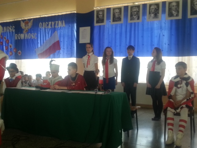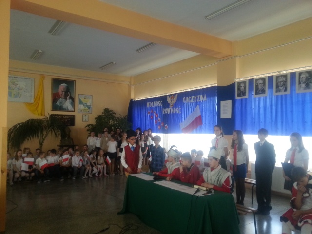 Dnia 30 kwietnia 2014r. w naszej szkole odbyła się akademia z okazji 223. rocznicy uchwalenia Konstytucji 3 Maja przygotowana przez nauczycieli: p. Ewelinę Jakubczyk, p. Mirosławę Ziembę, p. Żanetę Motylską – Kacprzak, p. Zofię Bąkowicz i p. Elżbietę Orlik. Uczniowie z klas IV - VI aktywnie wzięli udział w uroczystości zarysowując tło historyczne uchwalenia pierwszej w Europie ustawy zasadniczej.