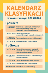 KALENDARZ KLASYFIKACJI UCZNIÓW W ROKU SZKOLNYM 2025/2026